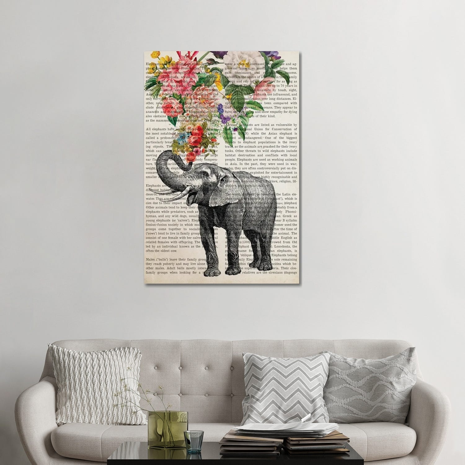 iCanvas "Elephant With Flowers Prints" by Aged Pixel Canvas Print