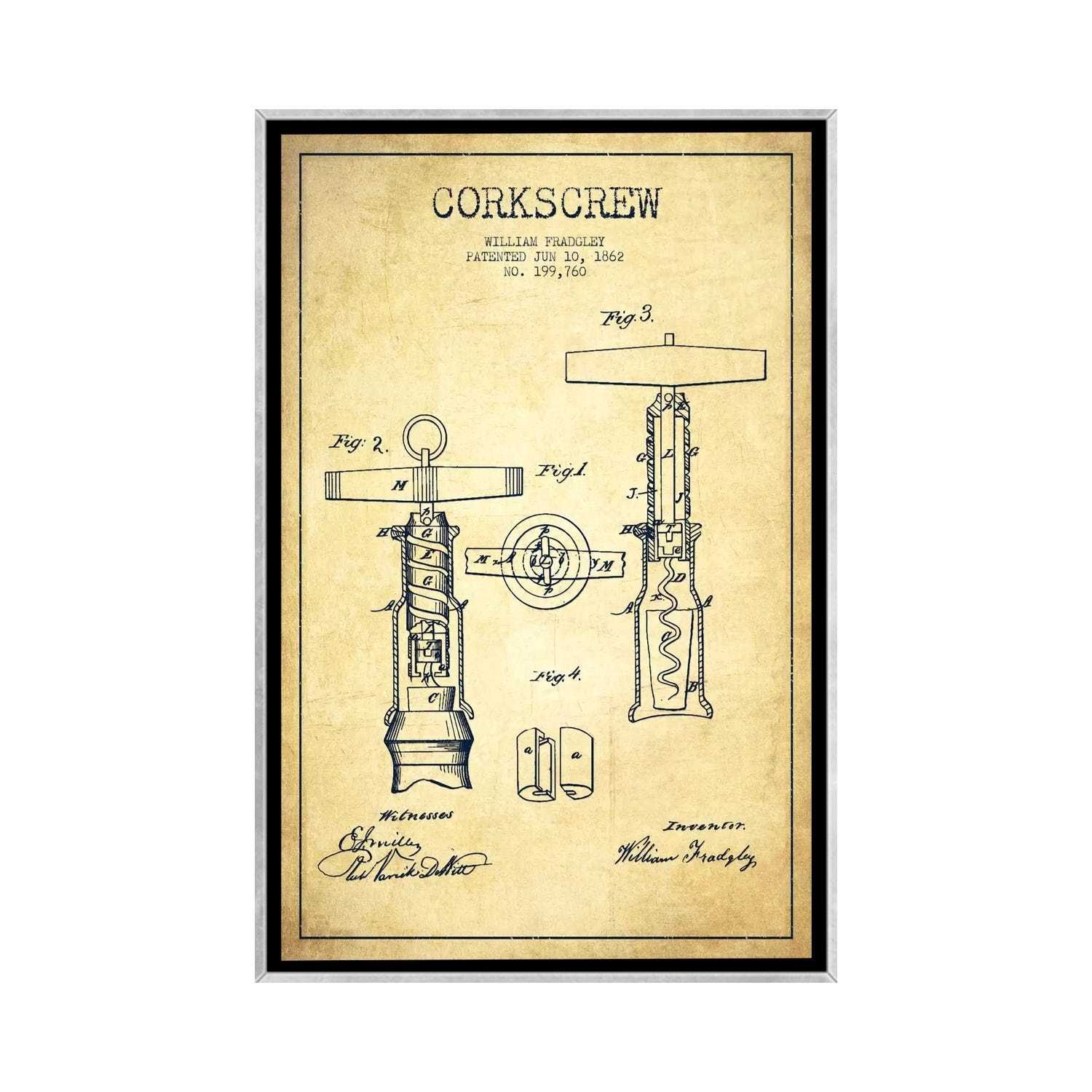 iCanvas "Corkscrew Vintage Patent Blueprint" by Aged Pixel Framed