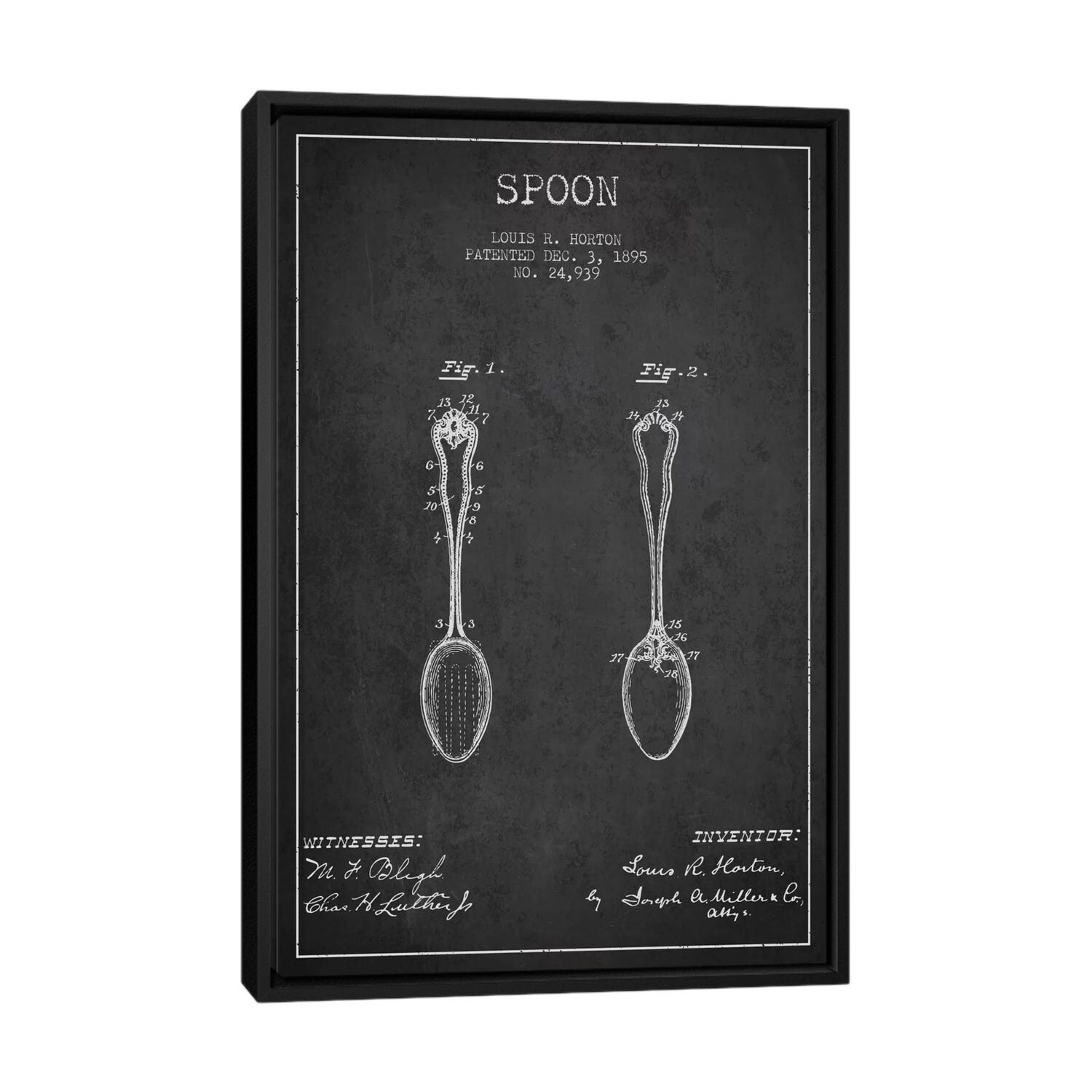 iCanvas "Spoon Charcoal Patent Blueprint" by Aged Pixel Framed Canvas Print