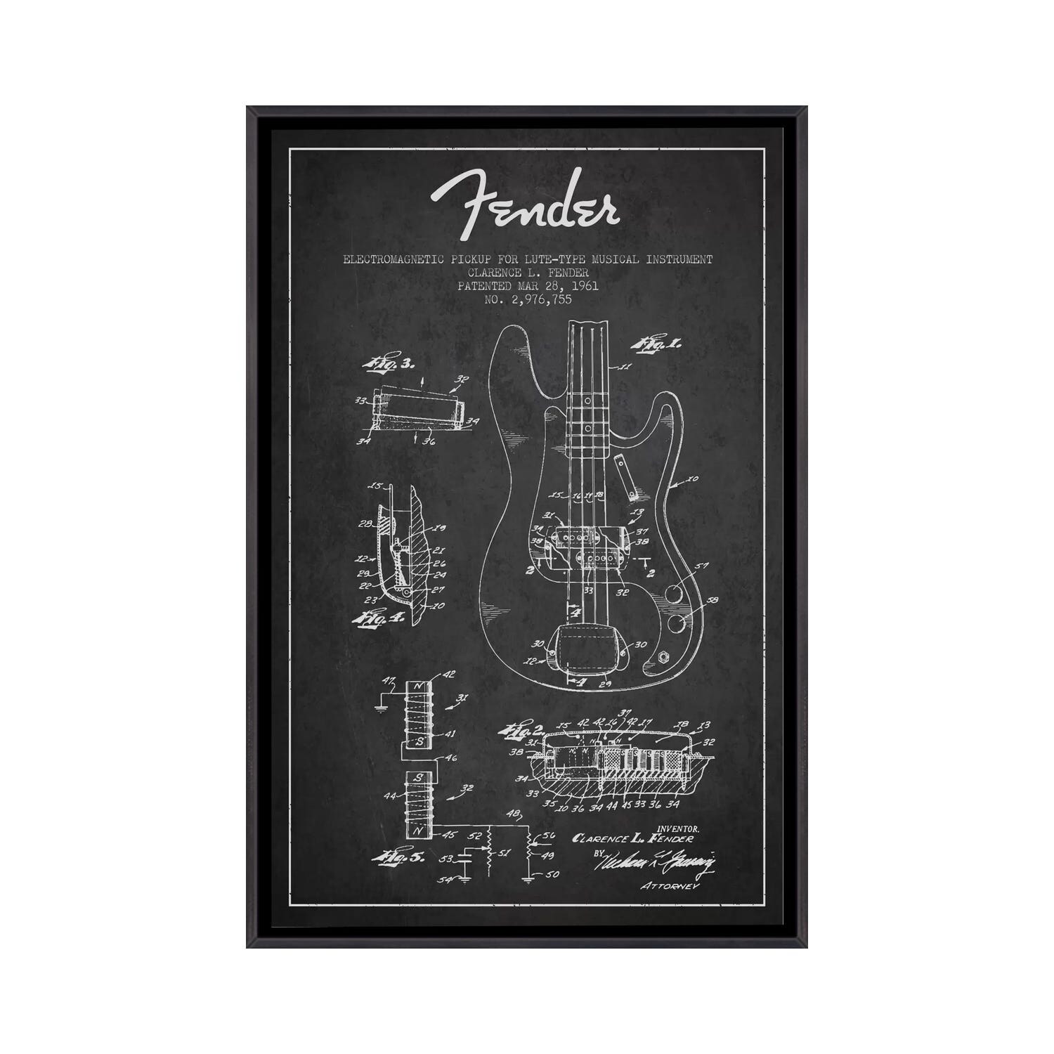 iCanvas "Guitar Charcoal Patent Blueprint" by Aged Pixel Framed