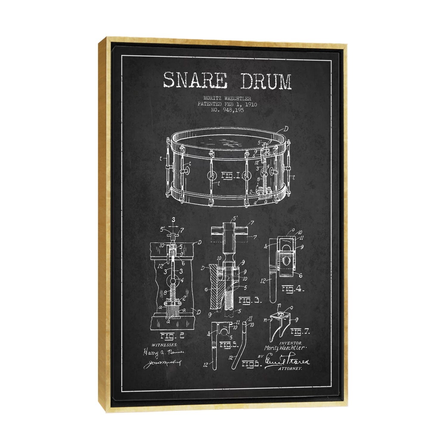 iCanvas "Waechtler Snare Charcoal Patent Blueprint" by Aged Pixel Framed Canvas Print