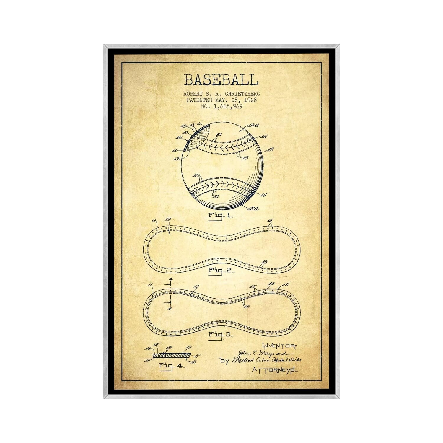 iCanvas "Baseball Vintage Patent Blueprint" by Aged Pixel Framed