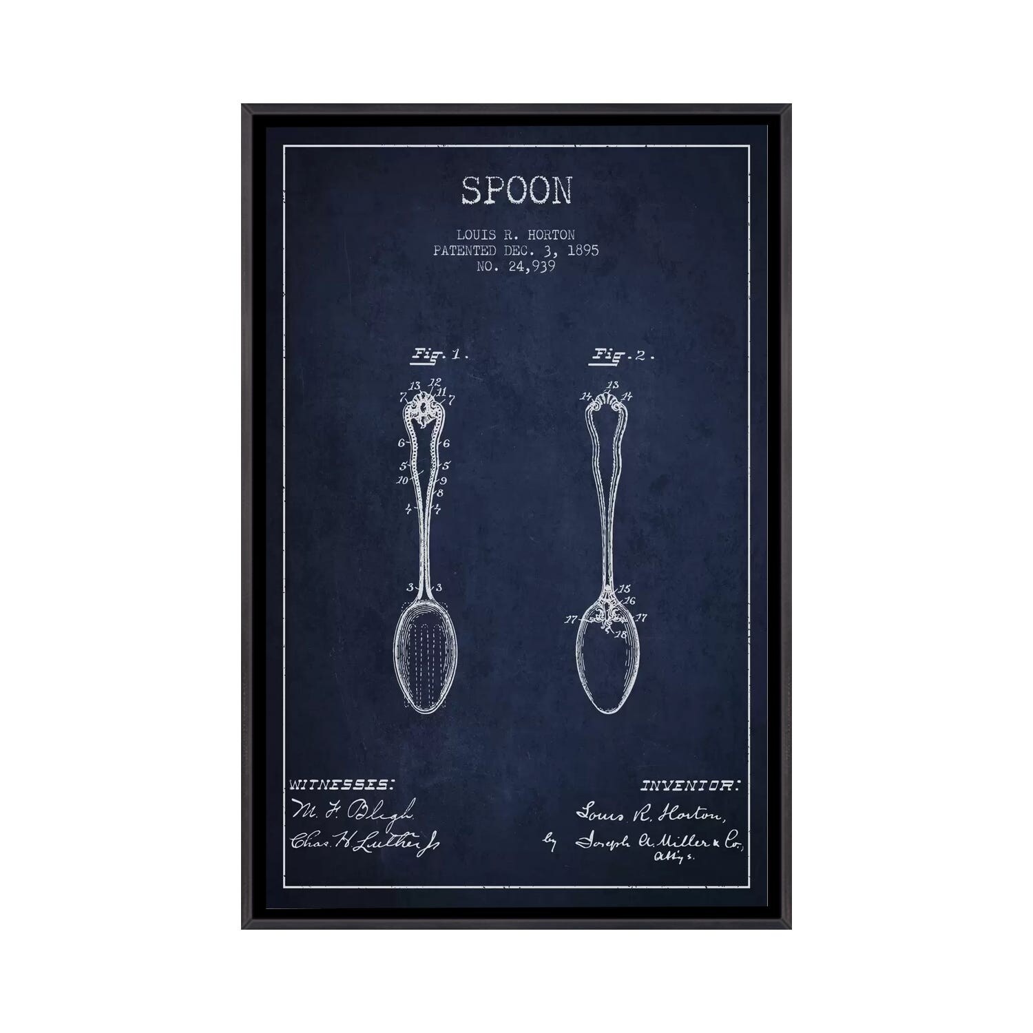 iCanvas "Spoon Navy Blue Patent Blueprint" by Aged Pixel Framed