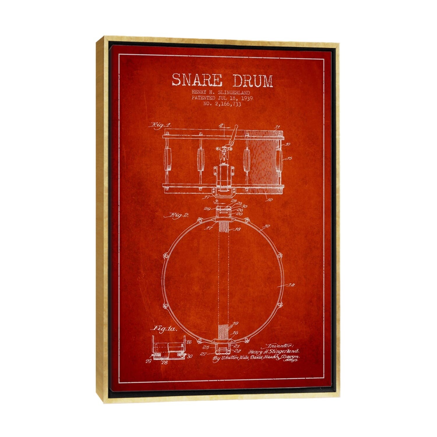 iCanvas "Drum Red Patent Blueprint" by Aged Pixel Framed