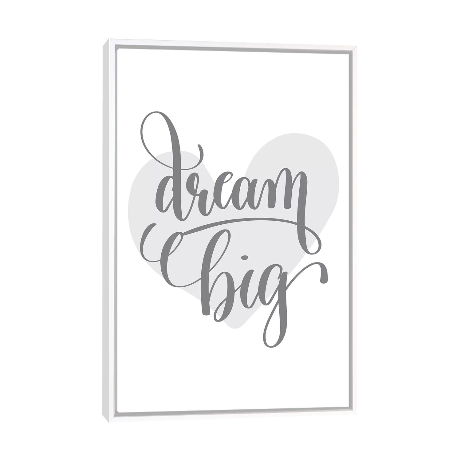 iCanvas "Dream Big Grey Heart" by Pixy Paper Framed