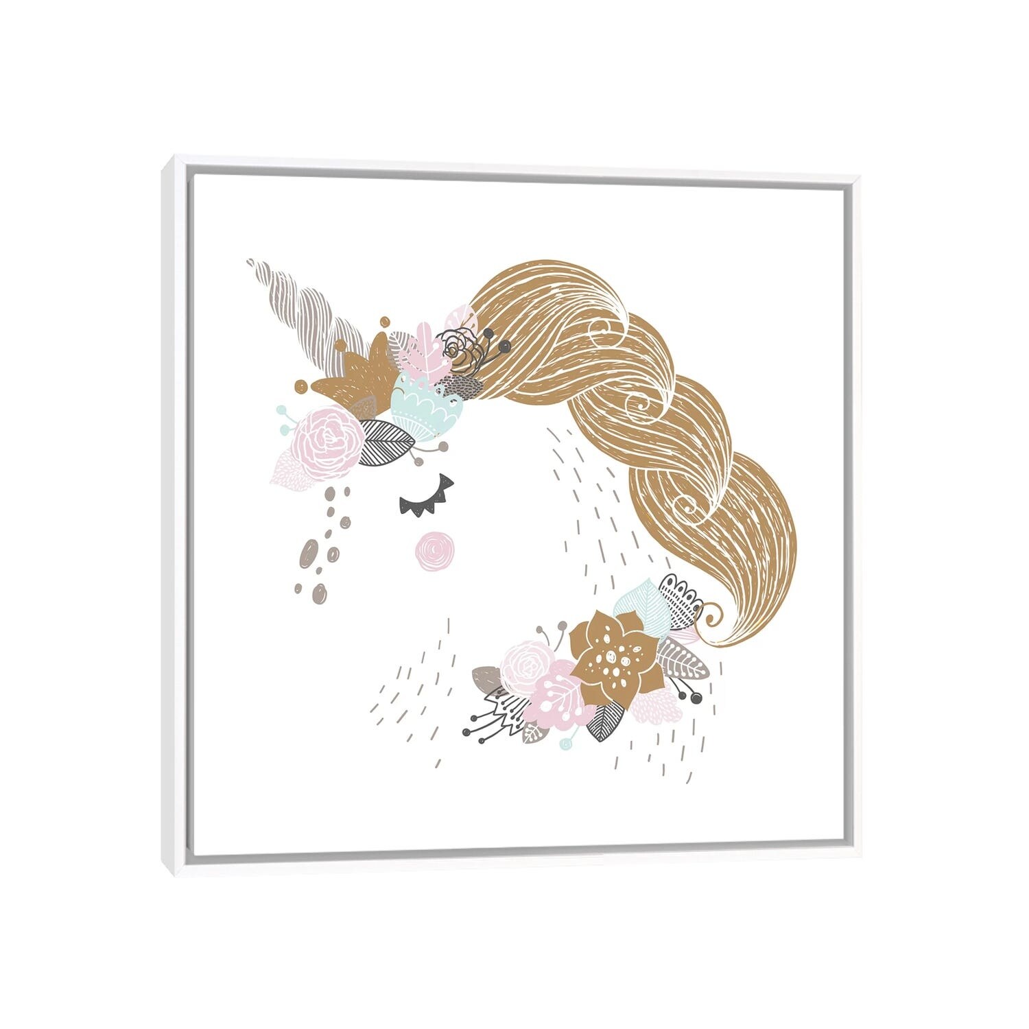 iCanvas "Super Unicorn Designs - Floral Unicorn" by Pixy Paper Framed
