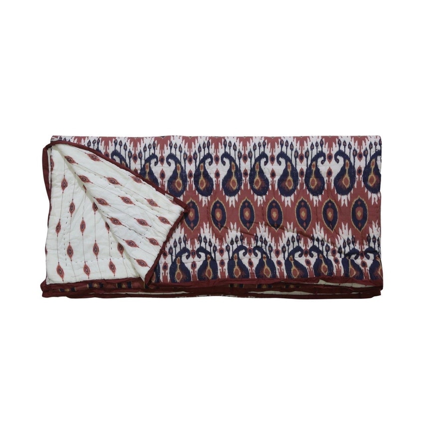 Timbergirl cotton handprinted red tribal quilt with 2 shams