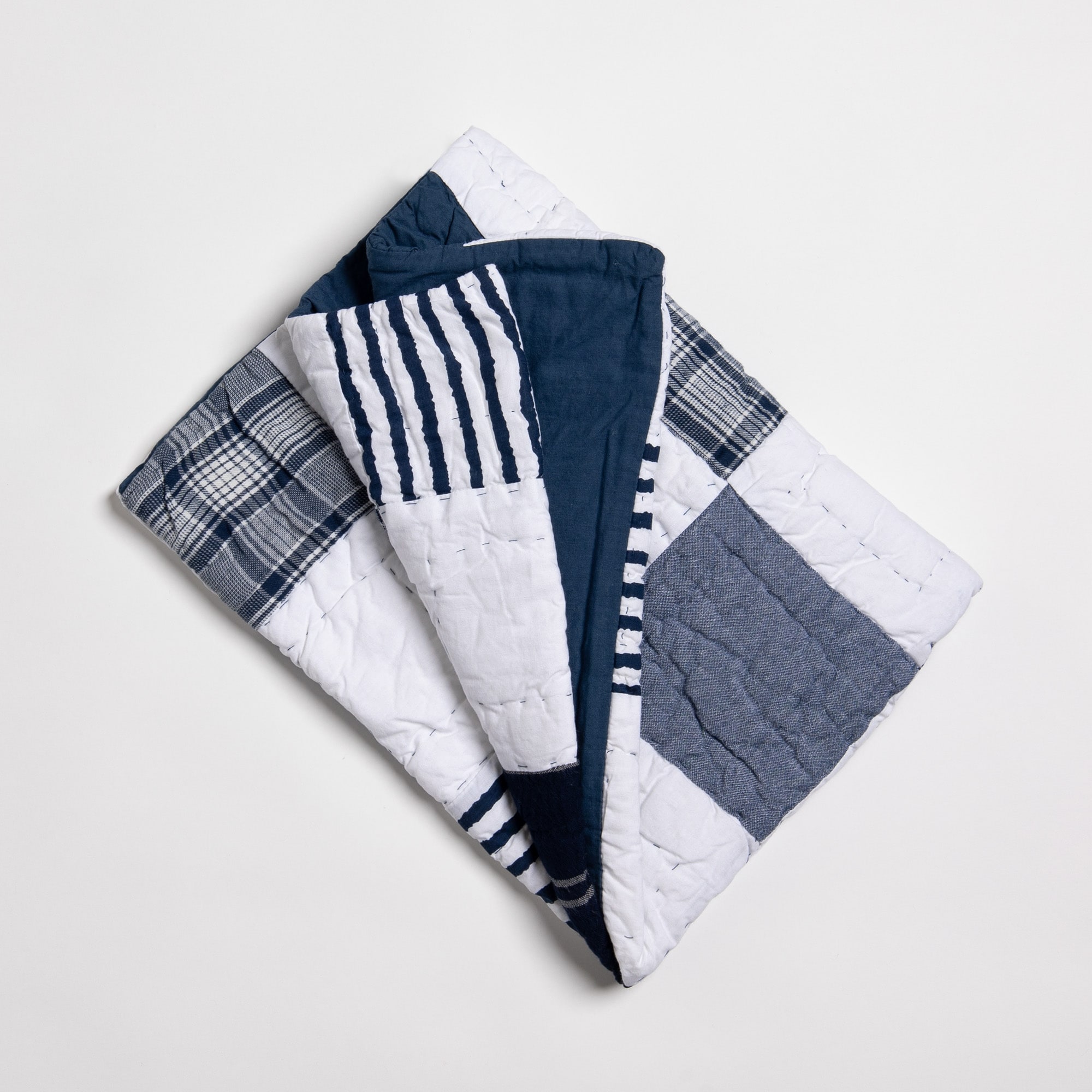 Jessie Blue & White Cotton Patchwork Quilt or Pillow Sham