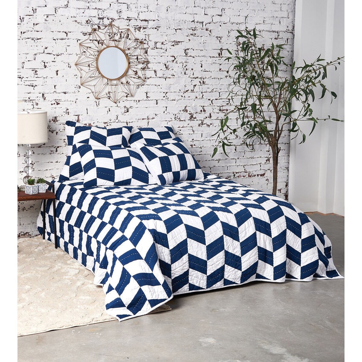 Parker Indigo Wave Pattern 3-Piece Quilt Set