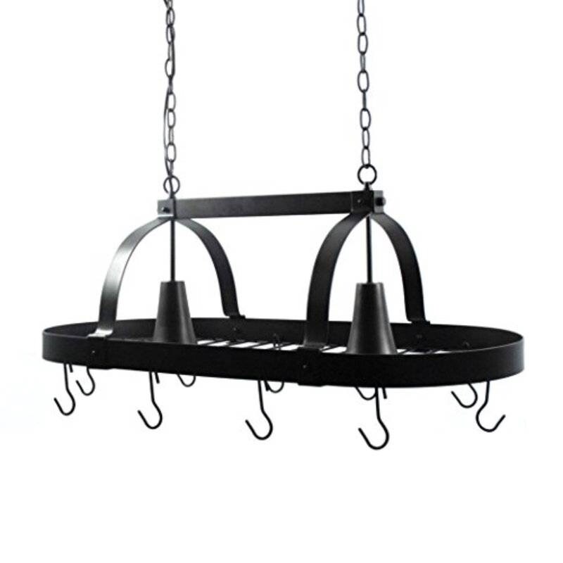 Rustic 2 Light 10 Hook Ceiling Mounted Hanging Pot Rack in Slate Gray