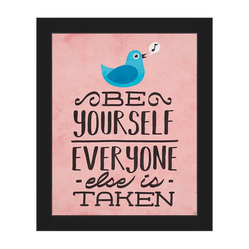 'Be Yourself Bird' Red Framed Canvas Wall Art