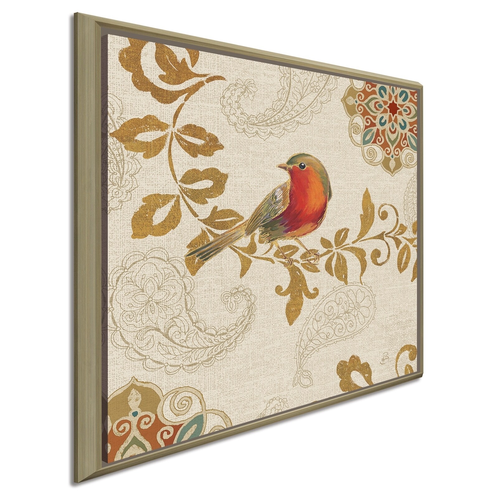 Fancy Birds Yellow and Red' Framed Canvas Wall Art