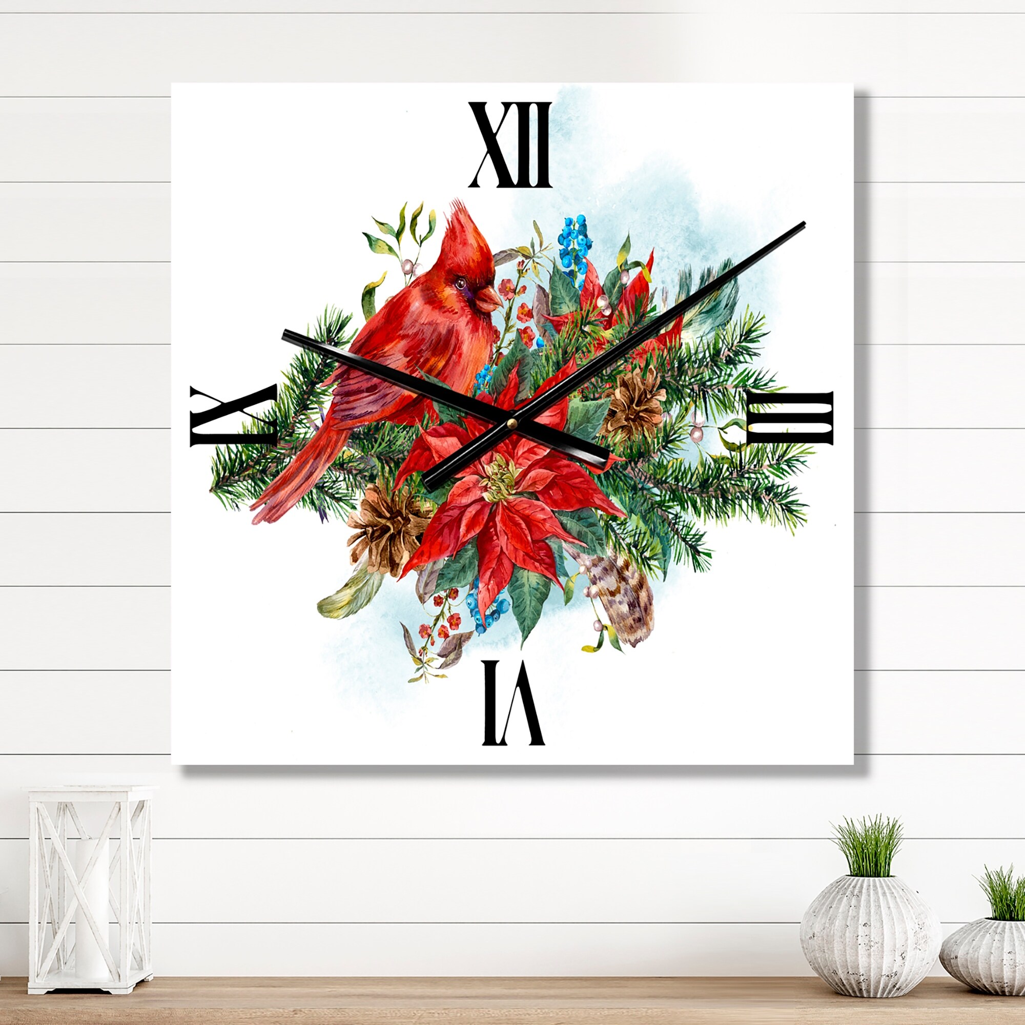 Designart 'Christmas Poinsettia and Red Cardinal Bird' Traditional wall clock