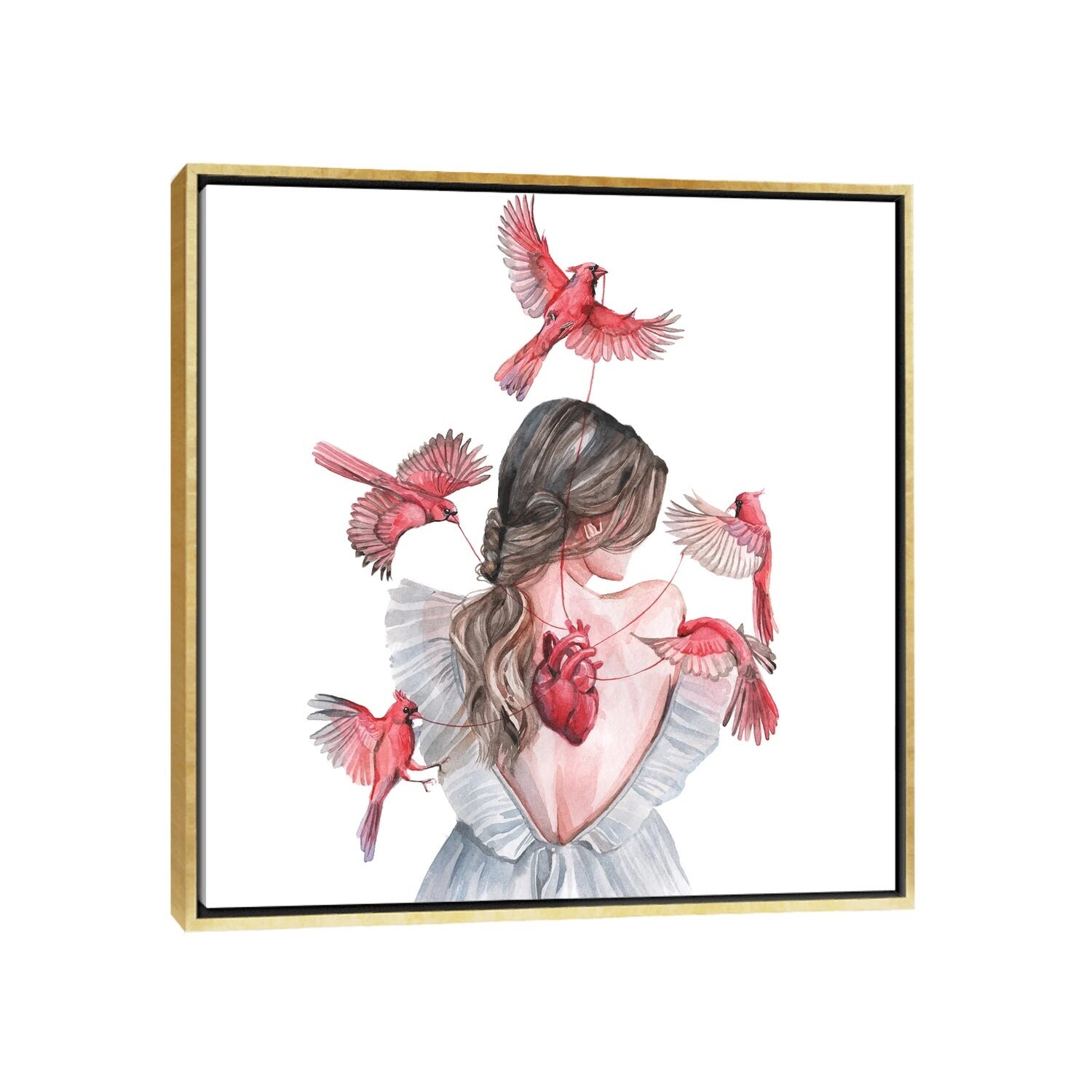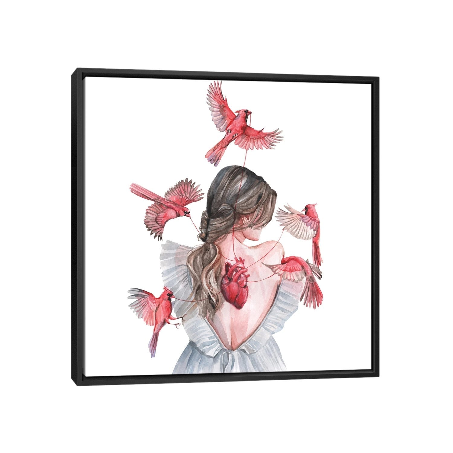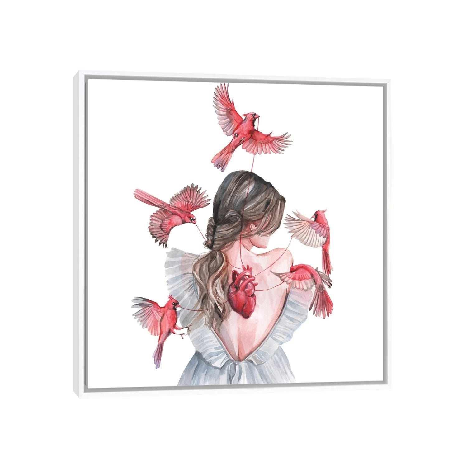 iCanvas "Woman And Birds Red Cardinal" by Yana Anikina Framed Canvas Print