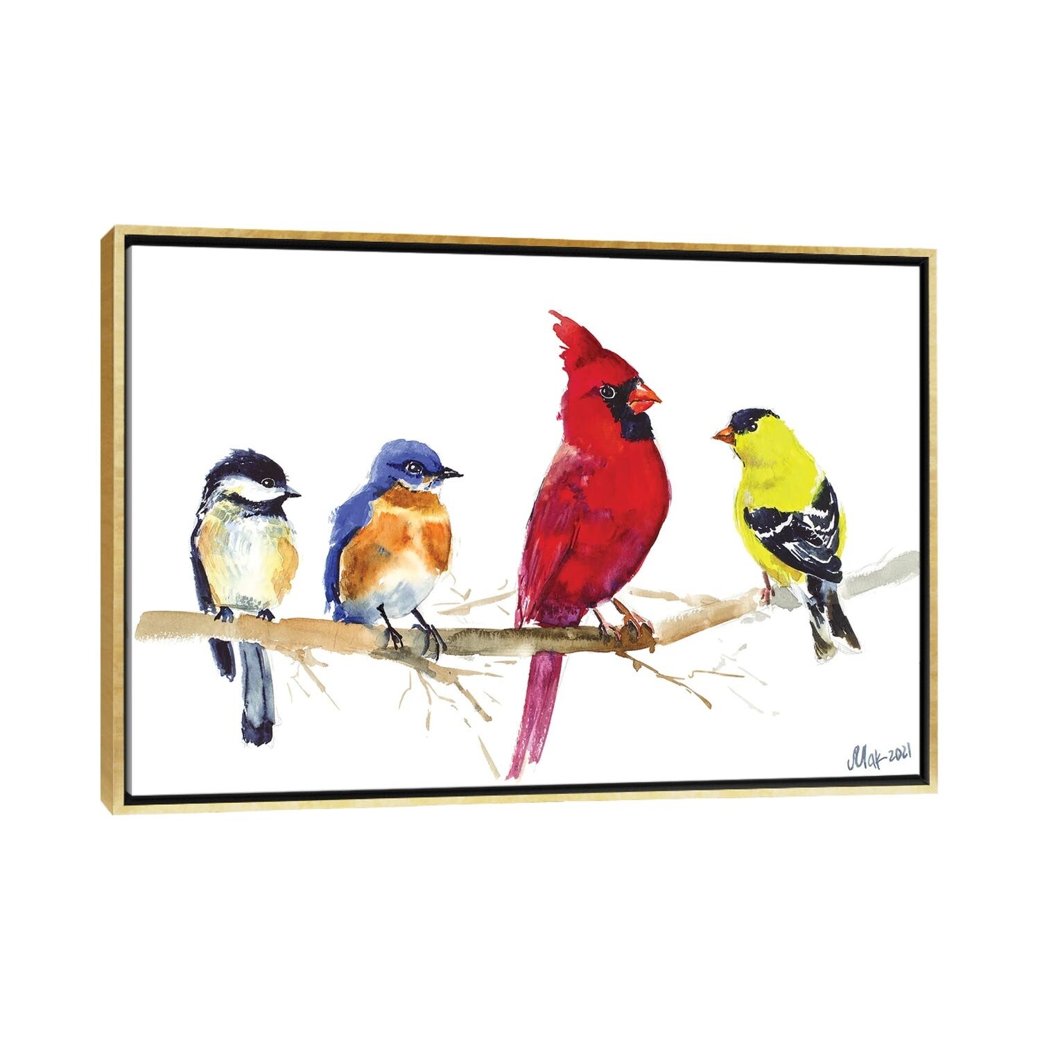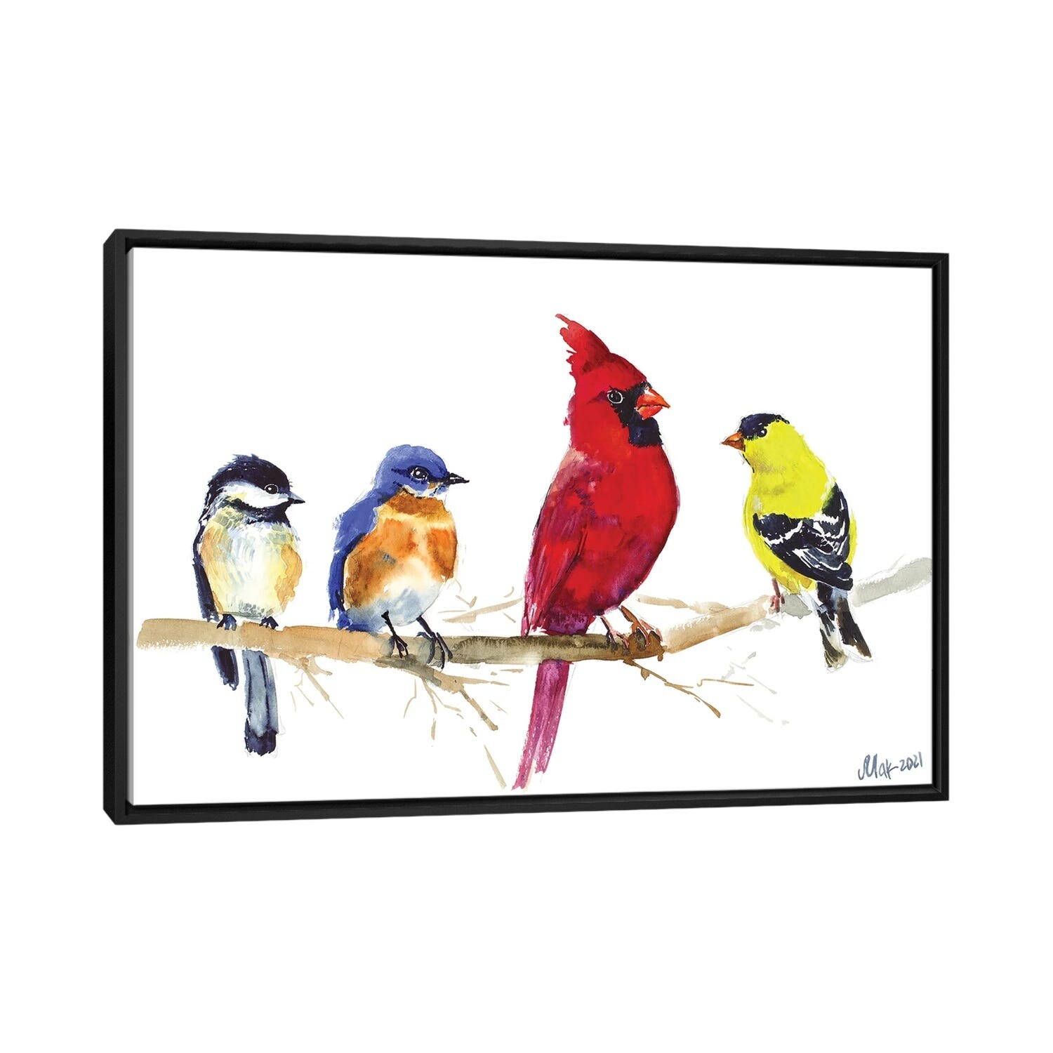 iCanvas "Birds On Wire - Red Cardinal, Chickadee, Goldfinch, Bluebird" by Nataly Mak Framed Canvas Print