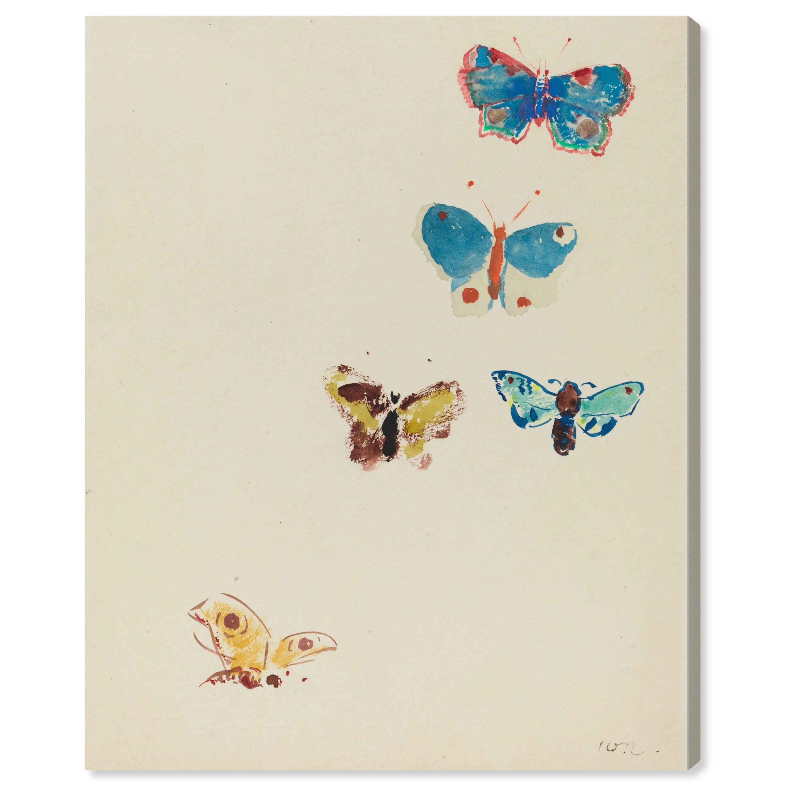 Wynwood Studio Canvas Animals Odilon Redon - Five Butterflies White and Modern & Contemporary Wall Art Canvas Print