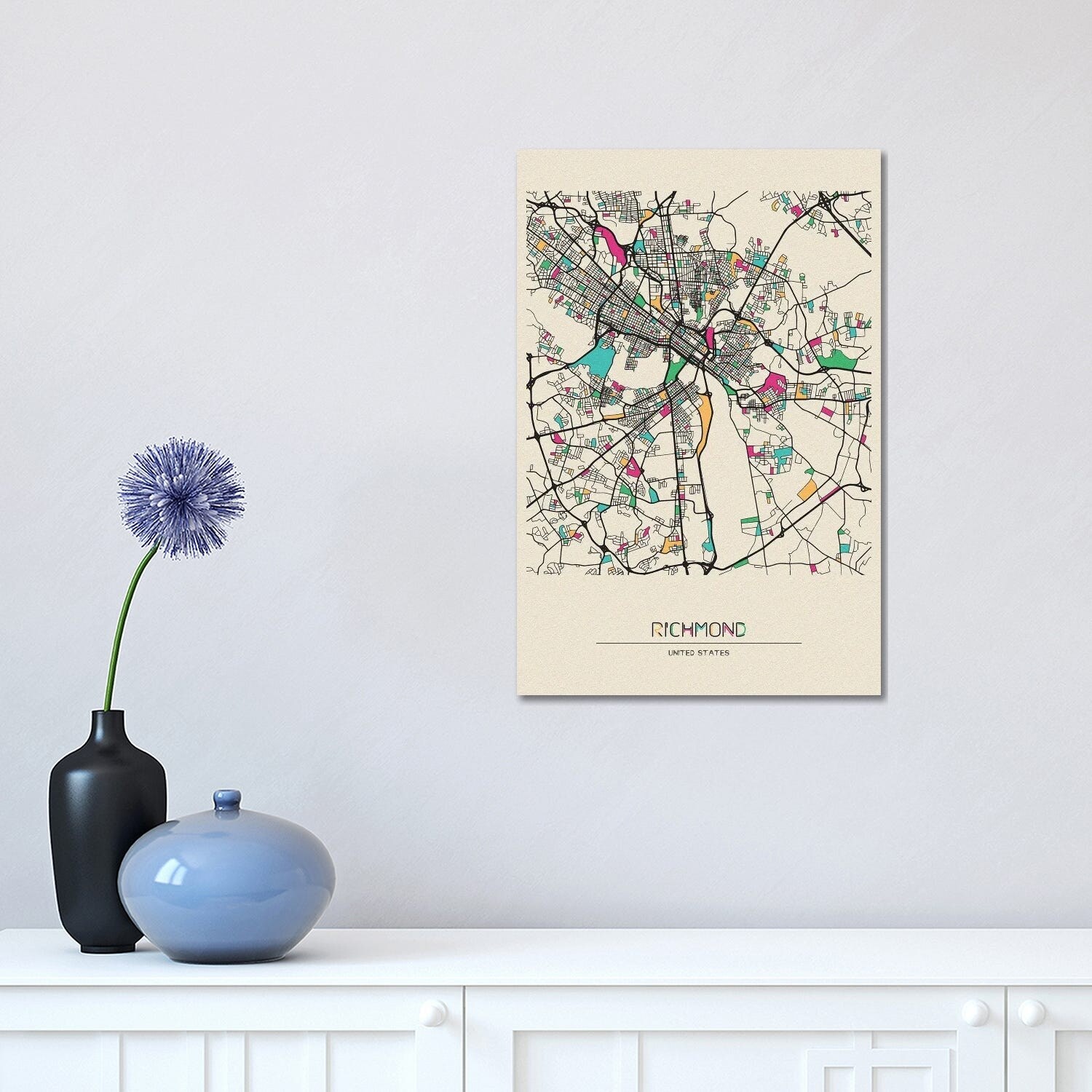 iCanvas "Richmond City Map Abstract Style" by WallDecorAddict Canvas Print