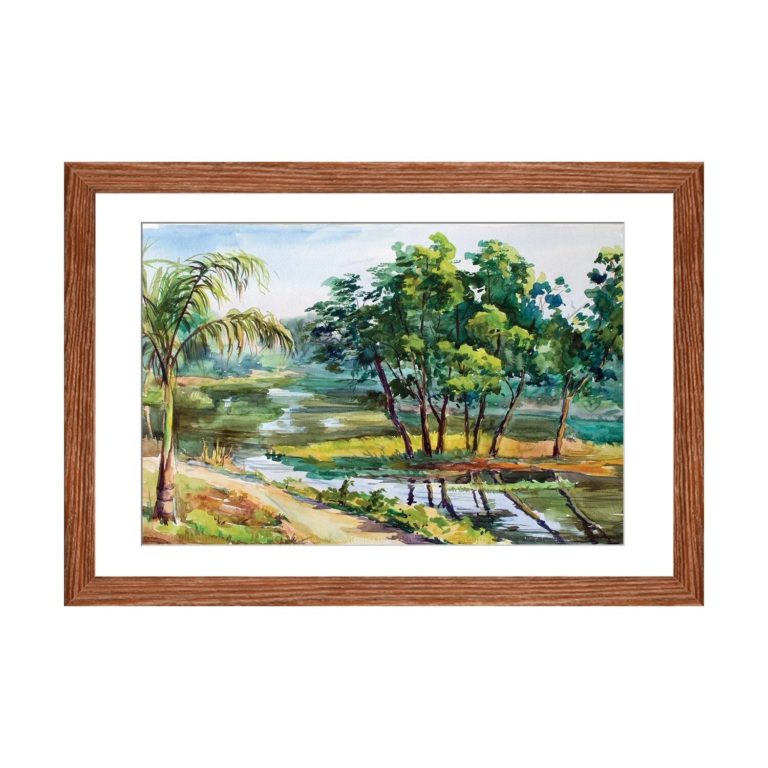 Designart "Green Trees By the Riverside" Traditional Framed Art Print