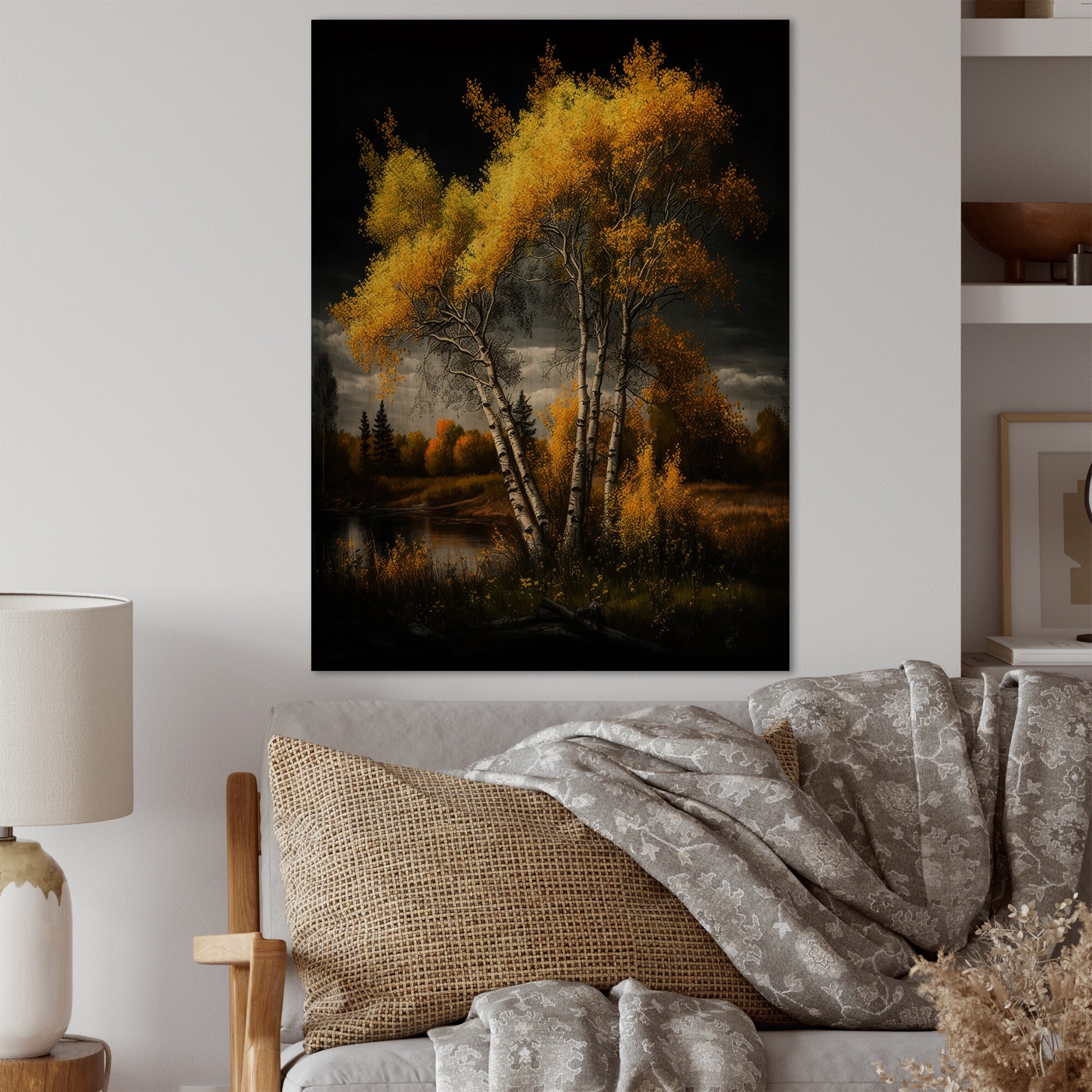 Designart "Yellow Birches By the Riverside II" Landscape Forest Canvas Wall Art