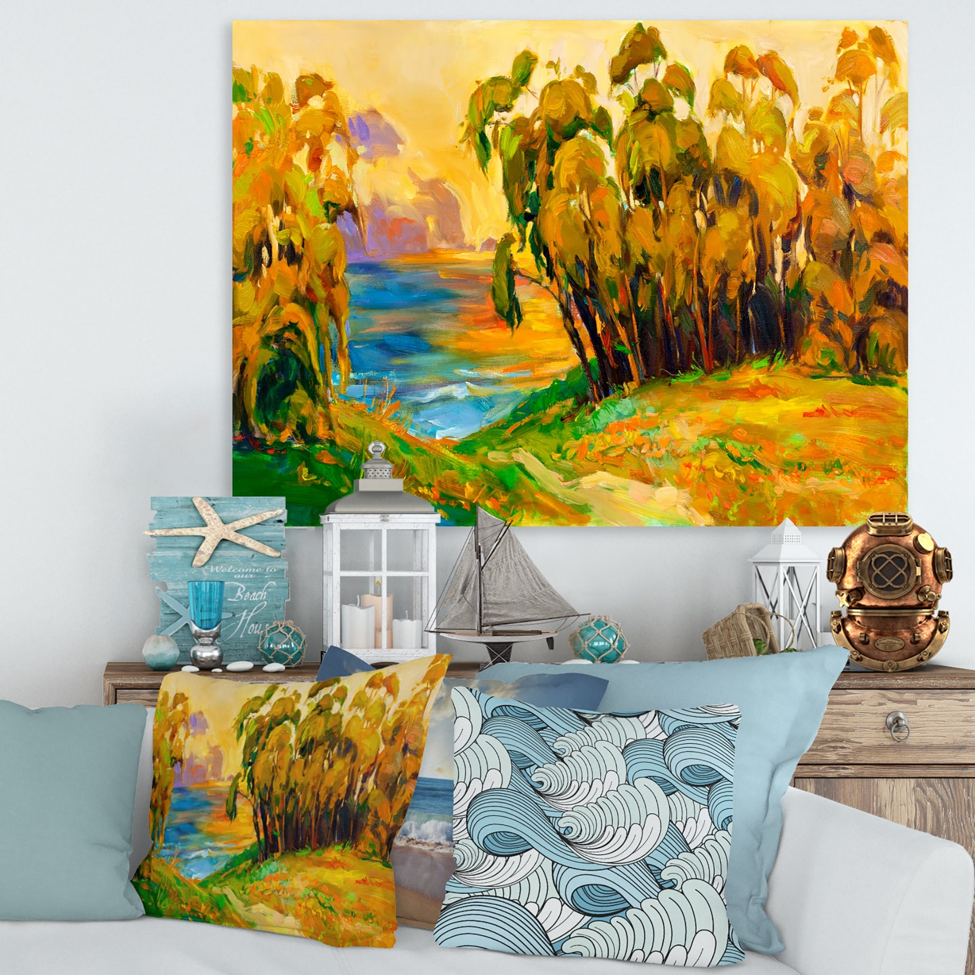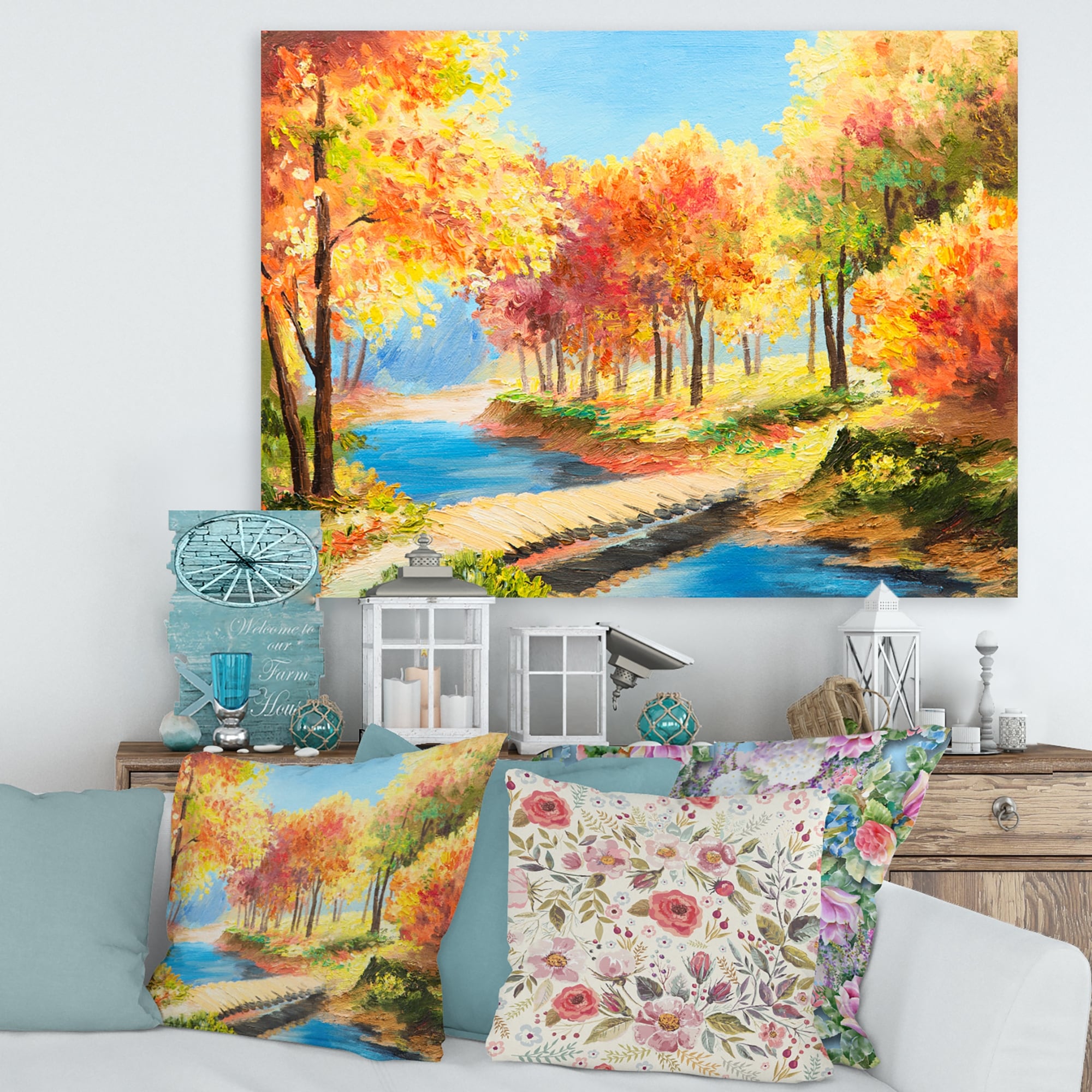 Designart "Yellow and Orange Trees By the Riverside" Lake House Canvas Wall Art Print