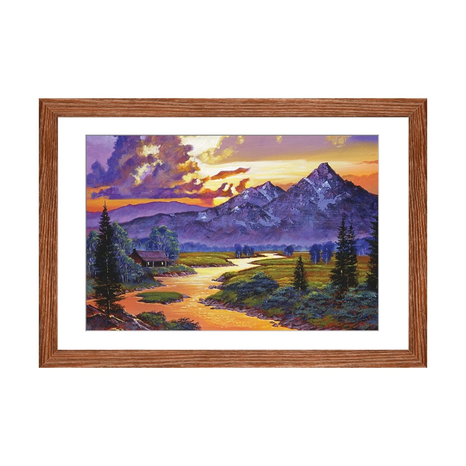 Designart "Mountain Viewed From the Riverside" Traditional Framed artwork