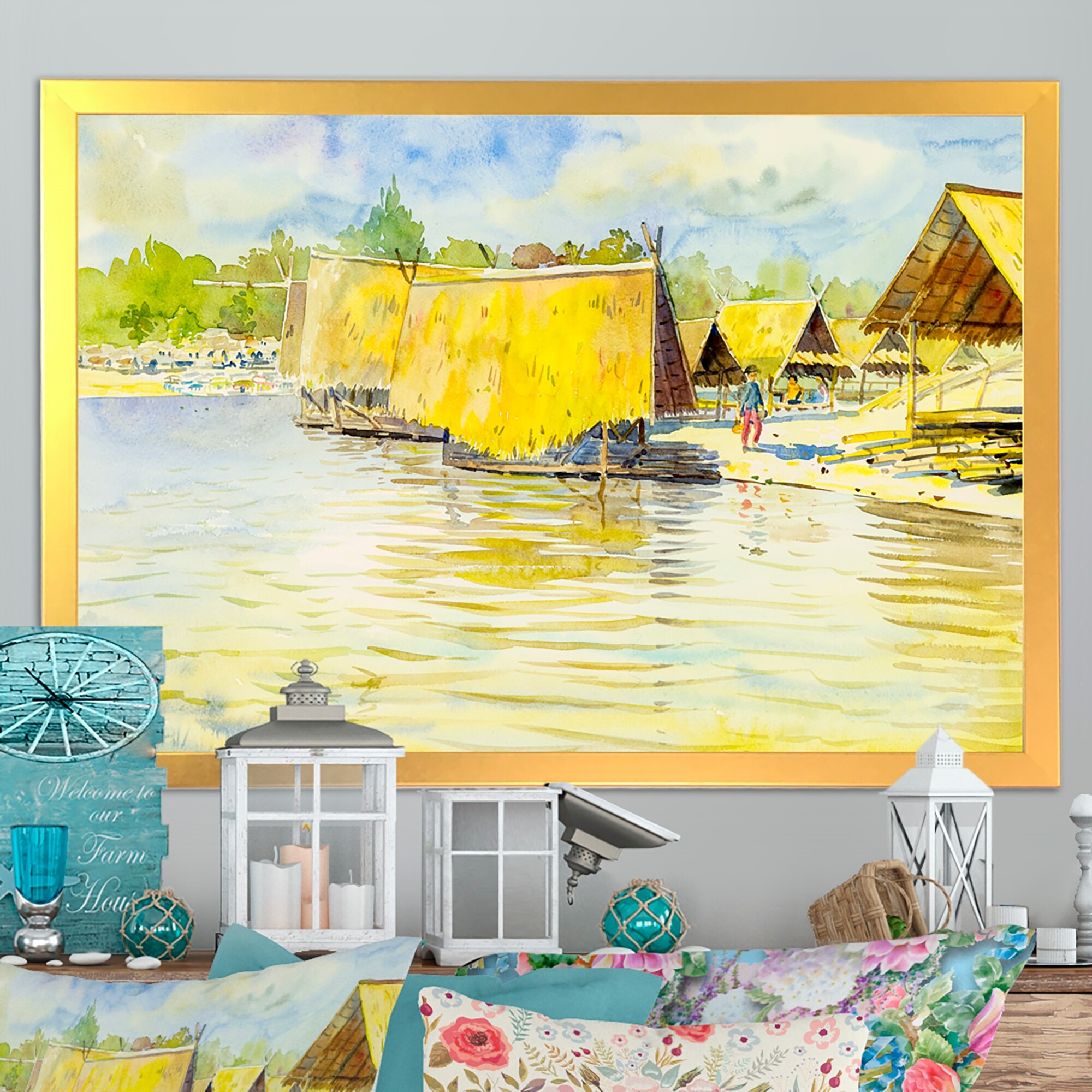 Designart "Riverside Life in Asian Country" Traditional Framed Art Print