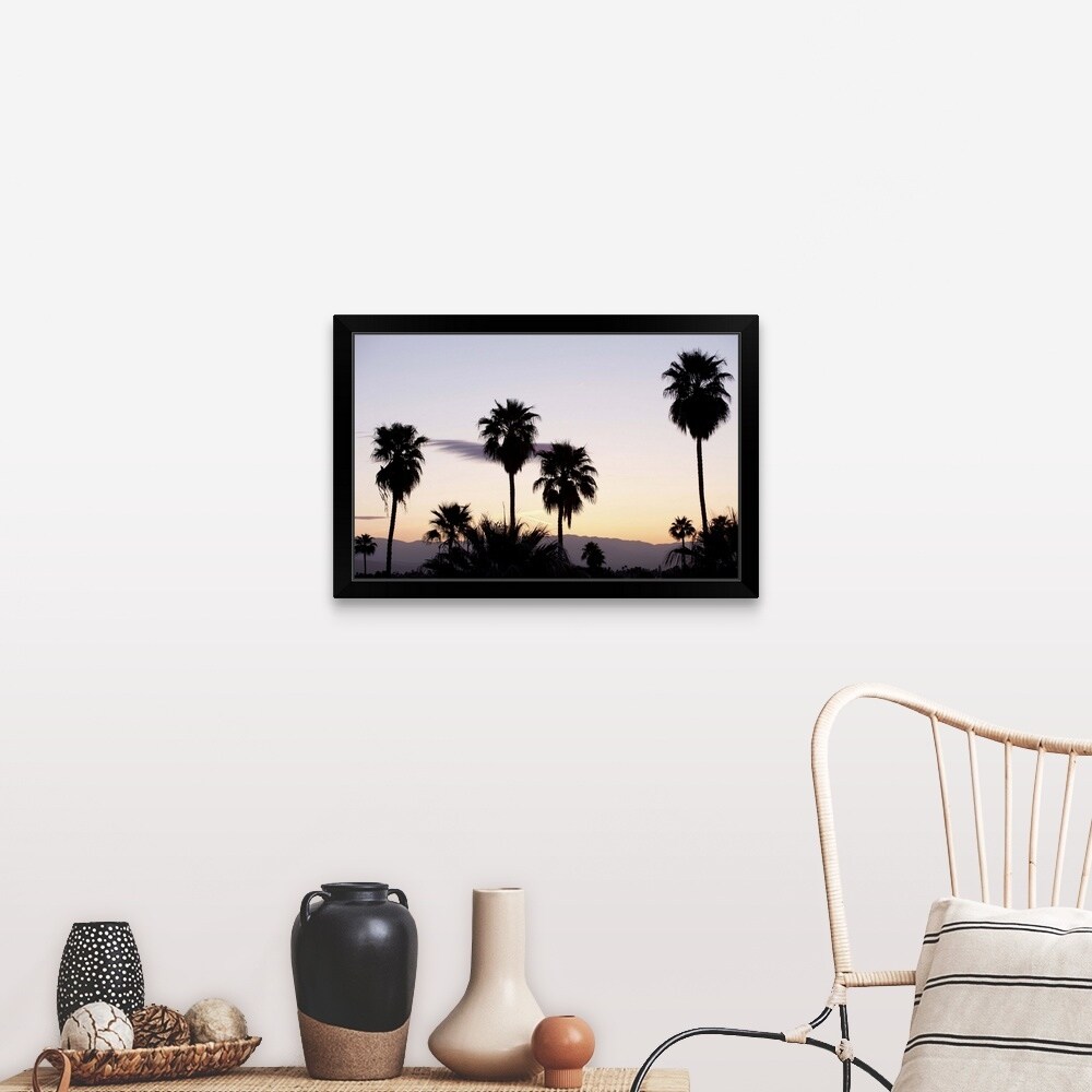 "Silhouette of palm trees at dusk, Palm Springs, Riverside County, California" Black Framed Print