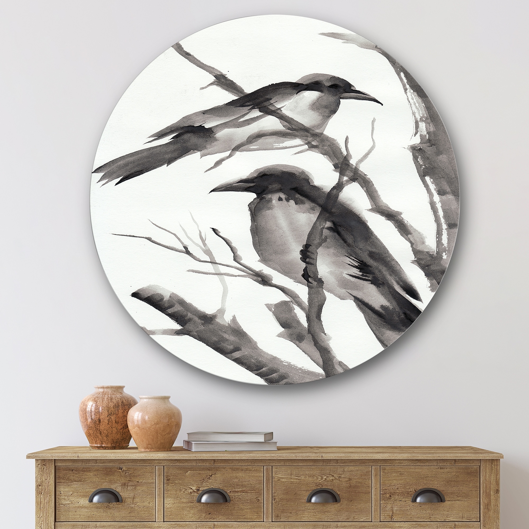 Designart 'Vintage Monochrome Sleeping Crows' Traditional Metal Circle Wall Art