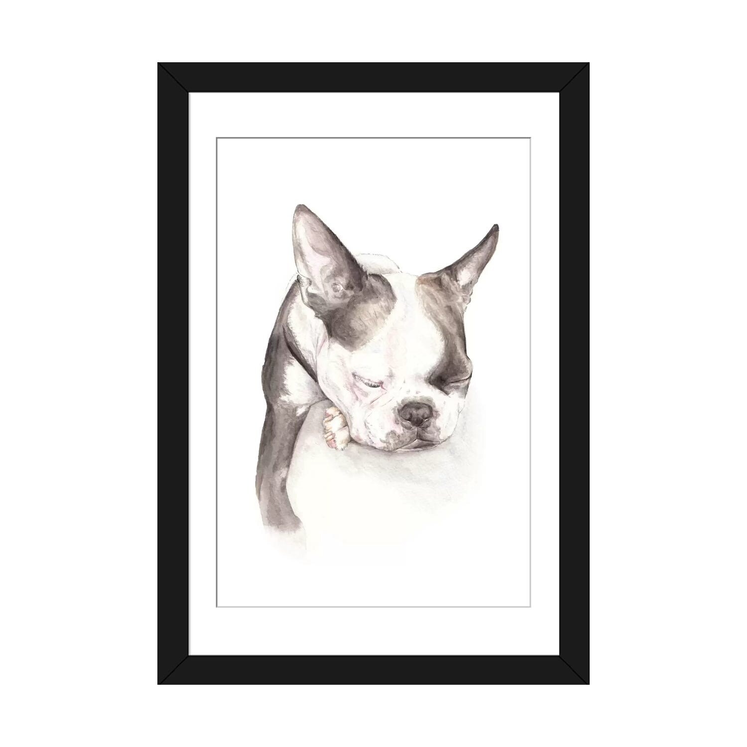 iCanvas "Boston Terrier Sleeping" by Wandering Laur Framed Canvas Print