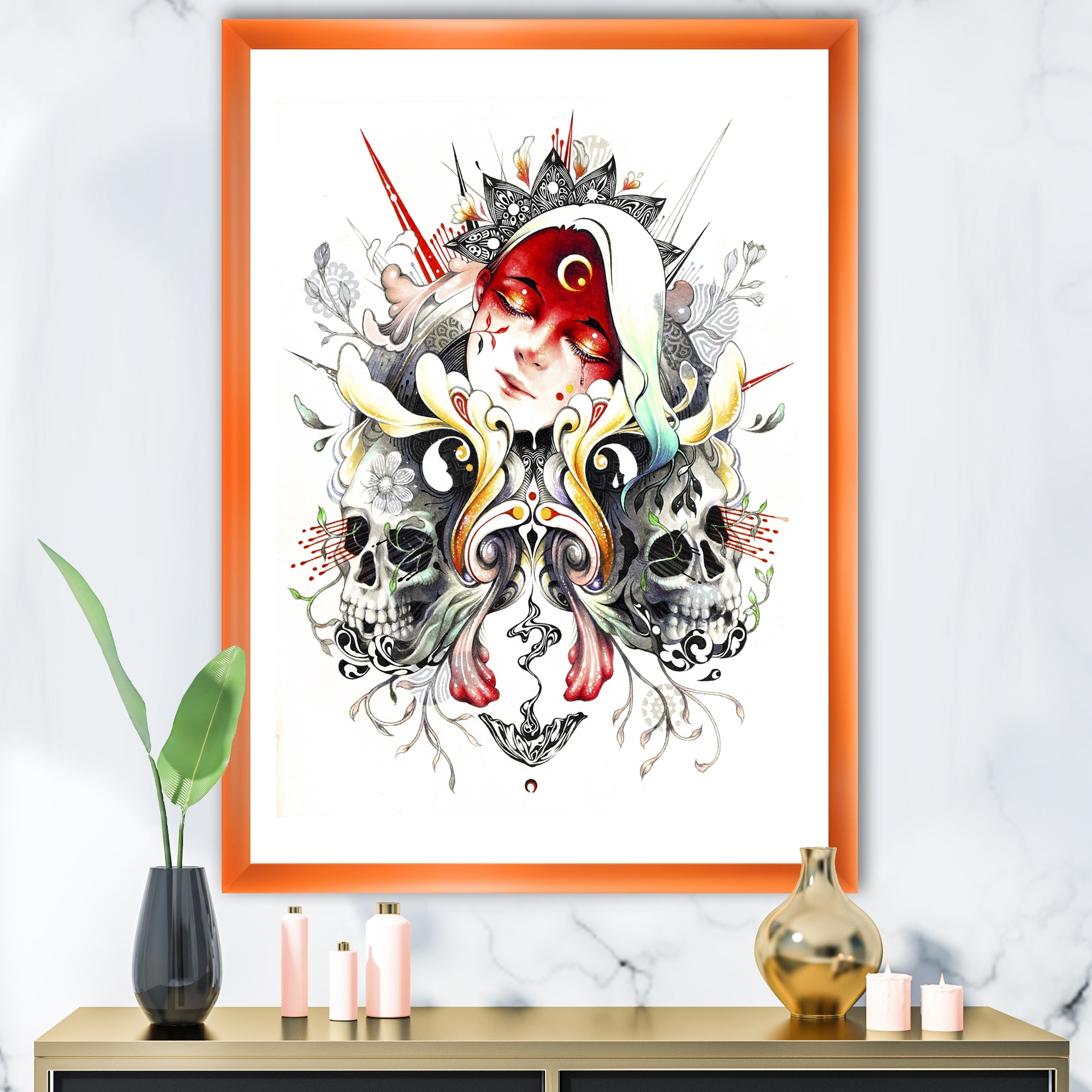 Designart "Sleeping Girl on Blossoming Skulls" Modern & Contemporary Premium Framed Art Print