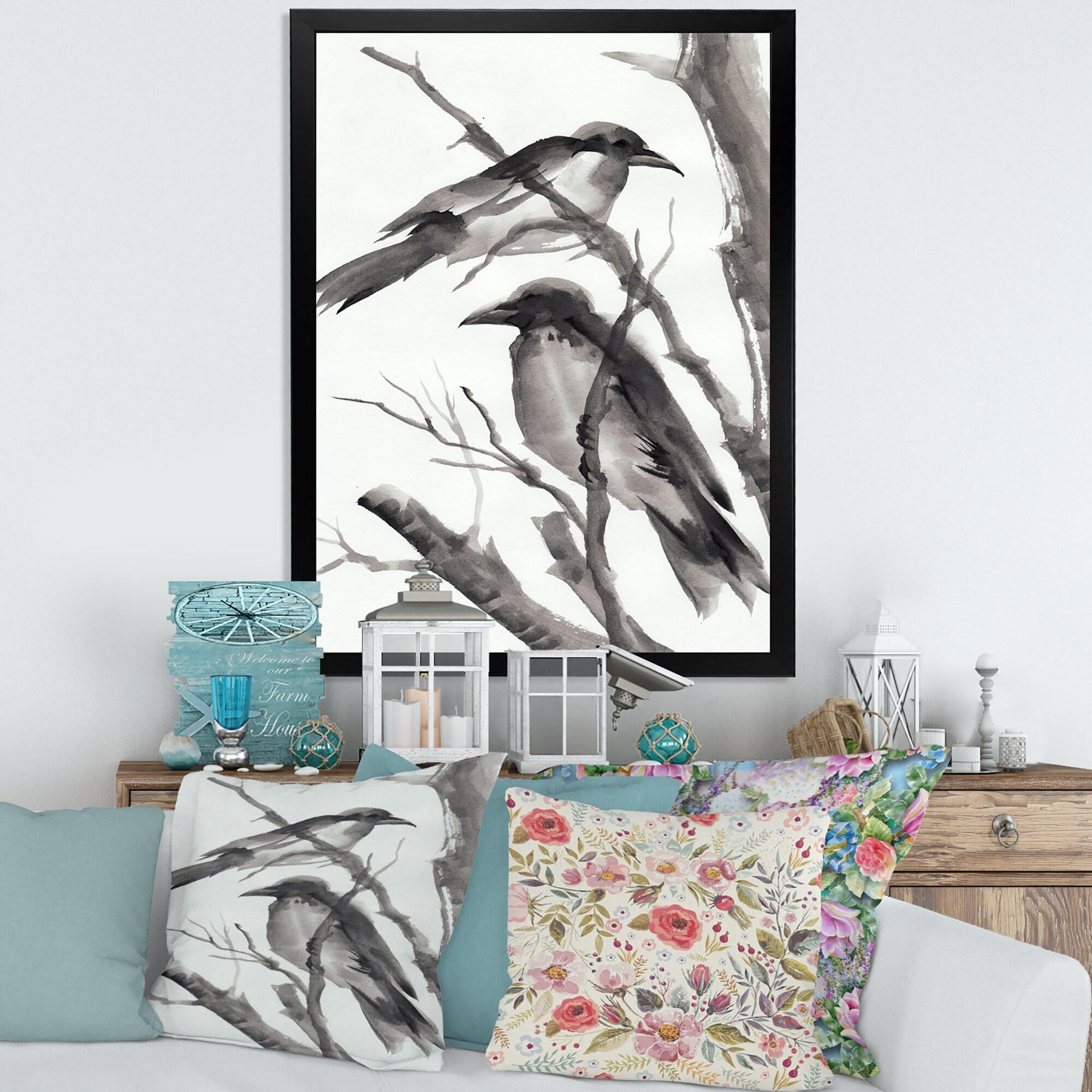Designart "Vintage Monochrome Sleeping Crows" Traditional Framed Art Print
