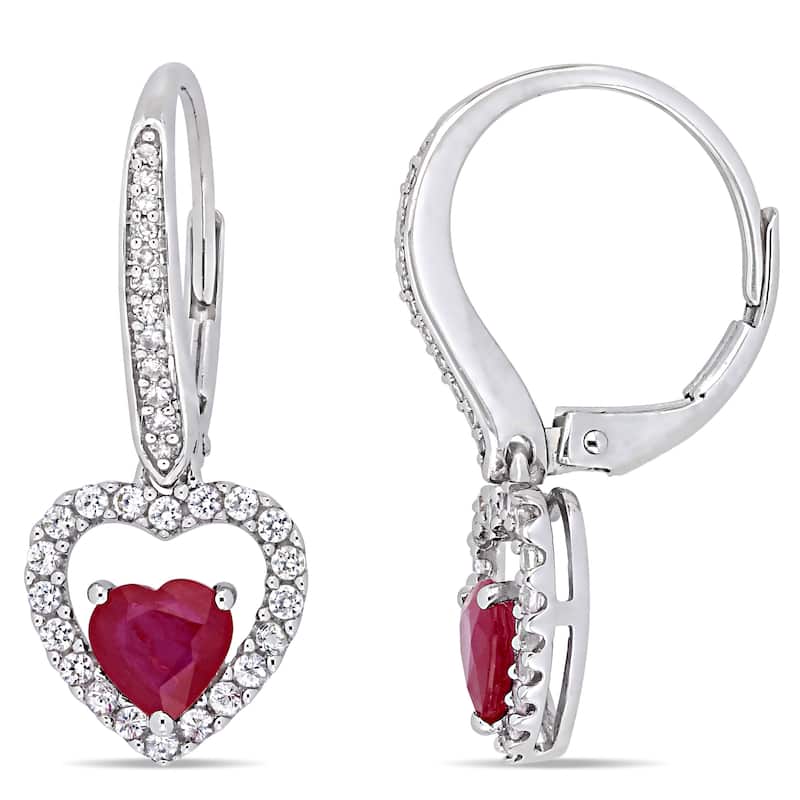 Miadora 14k White Gold Ruby White Sapphire 1/10ct TDW Diamond Heart Drop Earrings