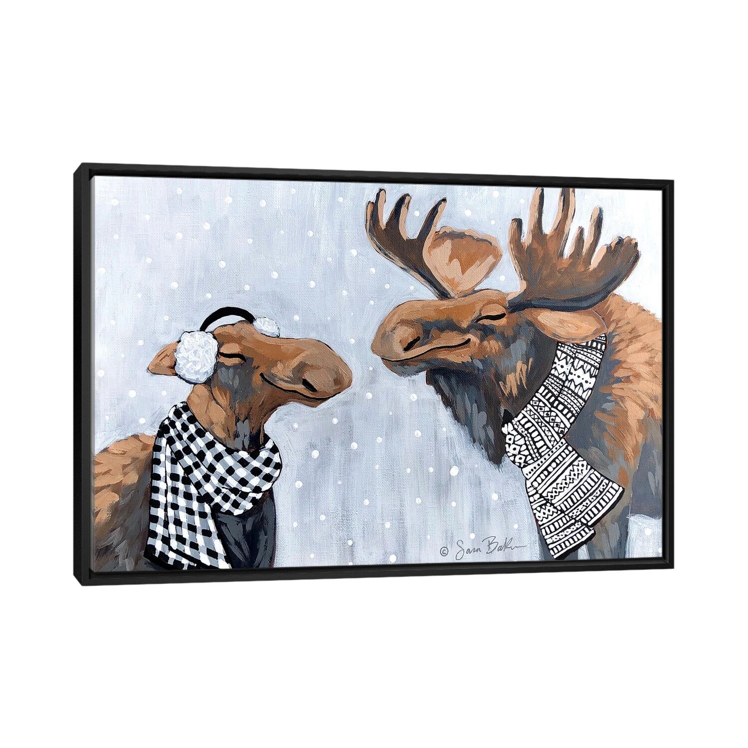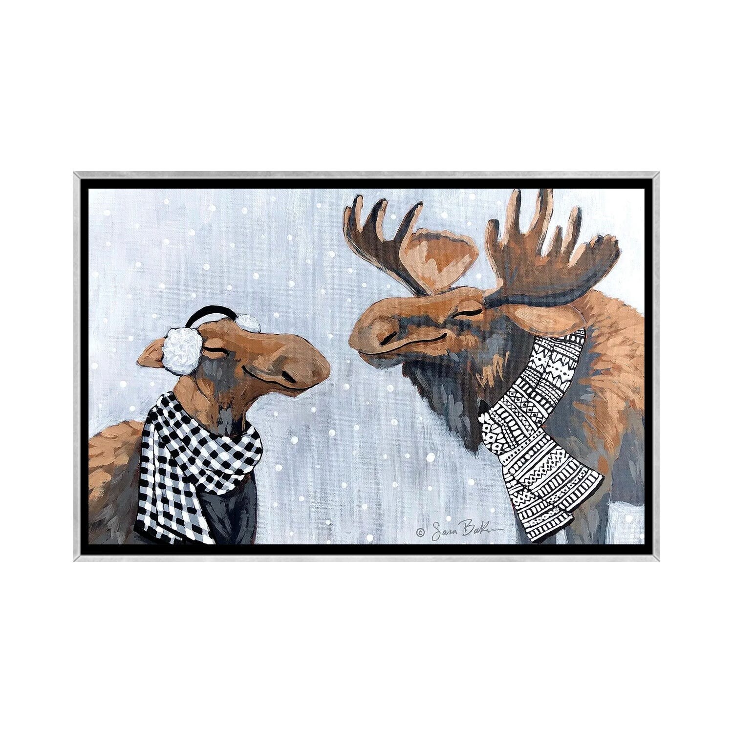iCanvas "Winter Moose Kisses" by Sara Baker Framed