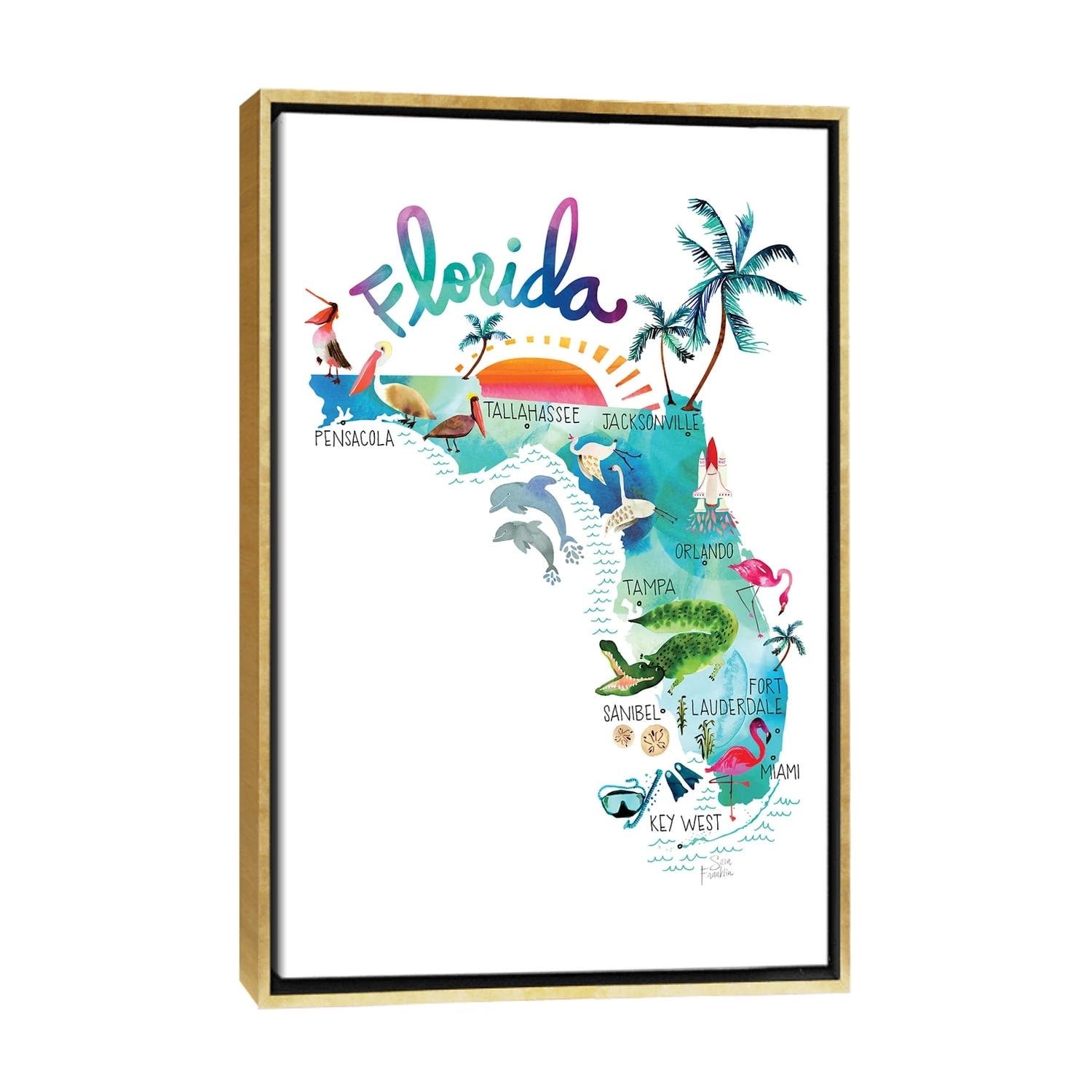 iCanvas "Florida Map" by Sara Franklin Framed Canvas Print