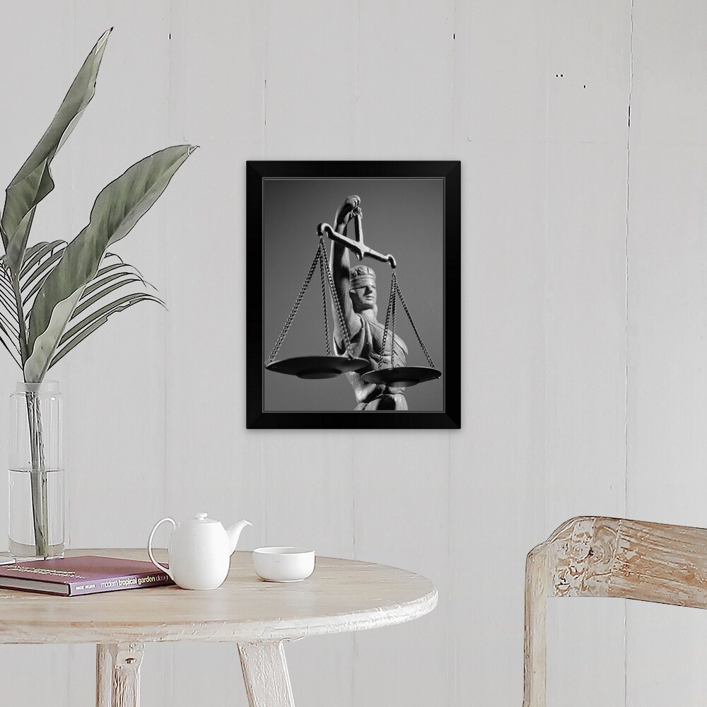 "1970's Statue of Blind Justice Holding Scales" Black Framed Print