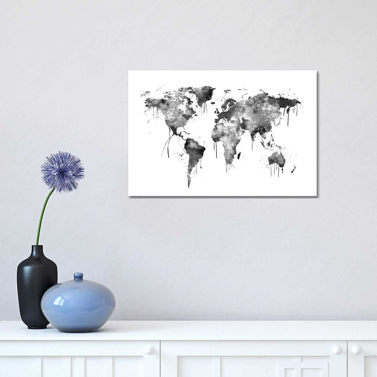 iCanvas "Watercolor Map of the World Map, Gray Scale" by Michael Tompsett Canvas Print