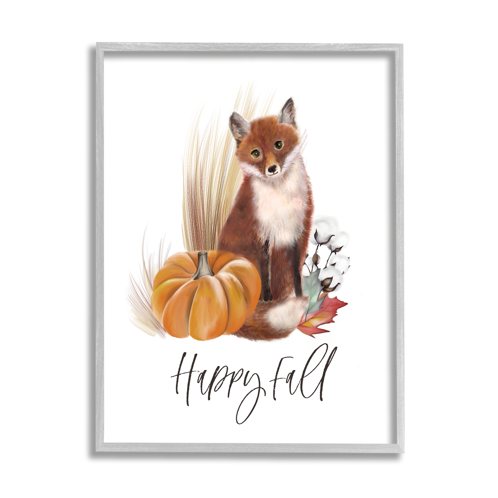 Stupell Industries Happy Fall Scenic Autumn Fox Pumpkin Botanicals Framed Wall Art, Design by Studio Q - Brown