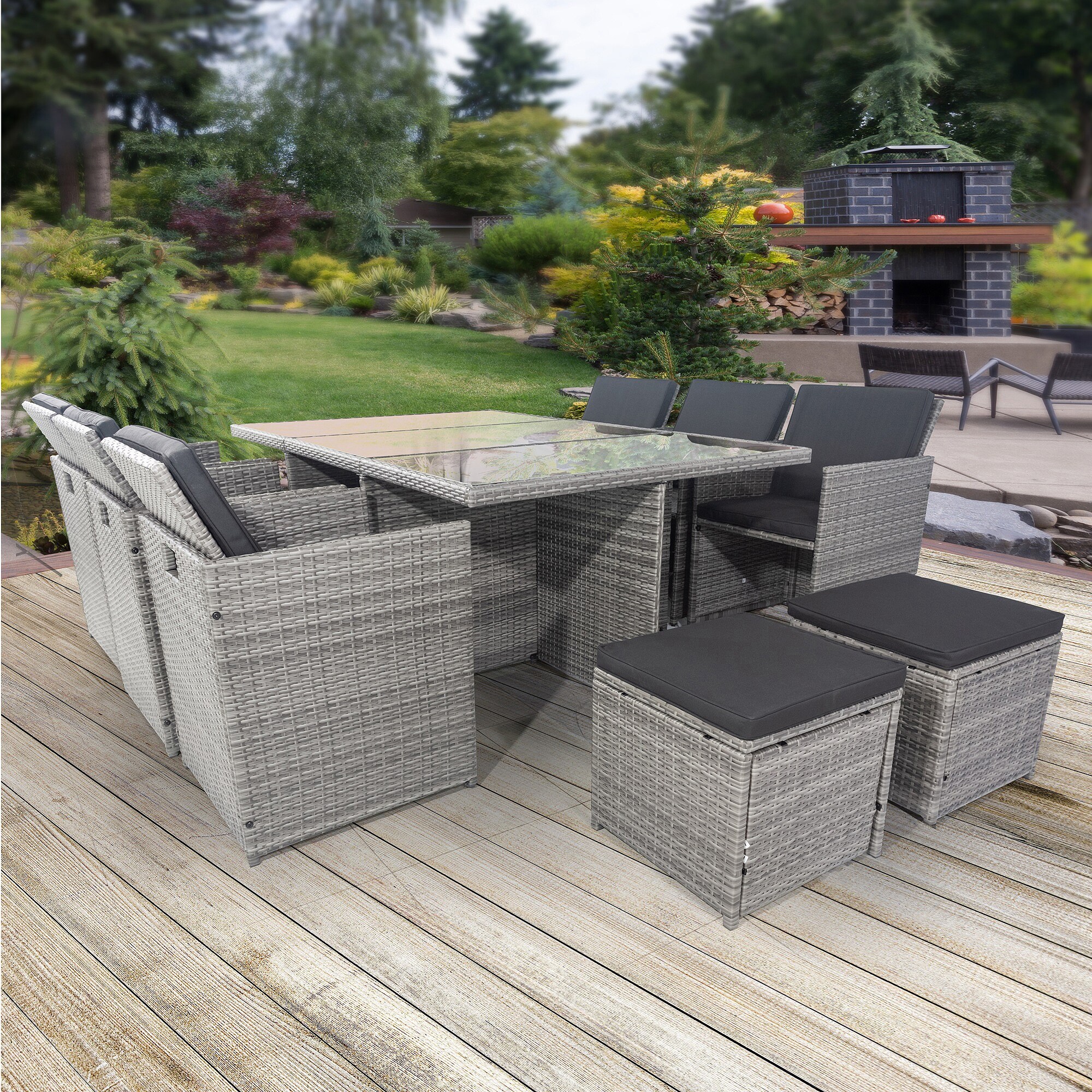 11 Pieces Rattan Outdoor Dining Sets with Cushioned Seating and Back
