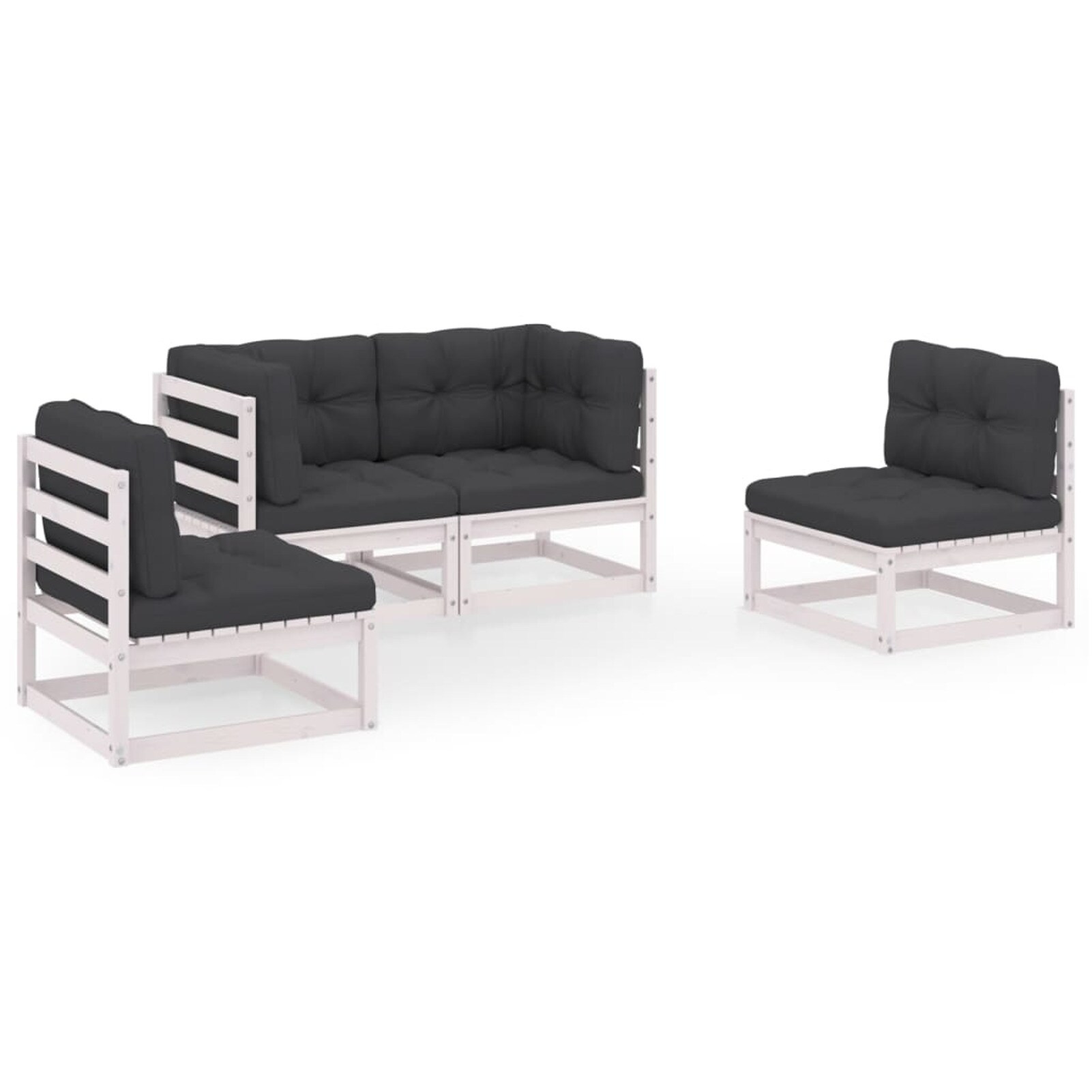 4 Piece Garden Lounge Set with Cushions Solid Pinewood