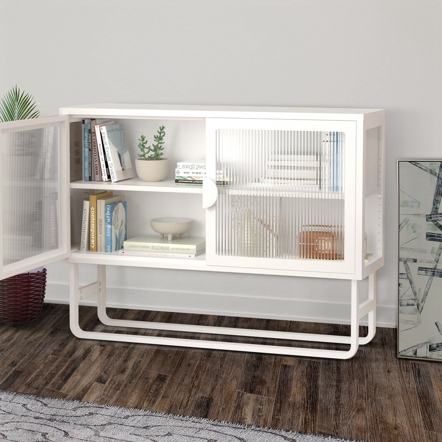 Double Glass Door Storage Cabinet with U-Shaped Leg