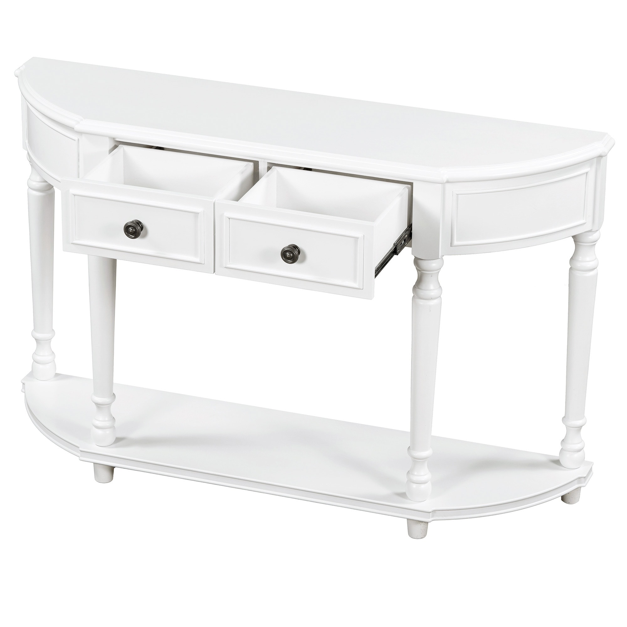 White Wood Console Table Side Table with Storage Drawers & Open Shelf