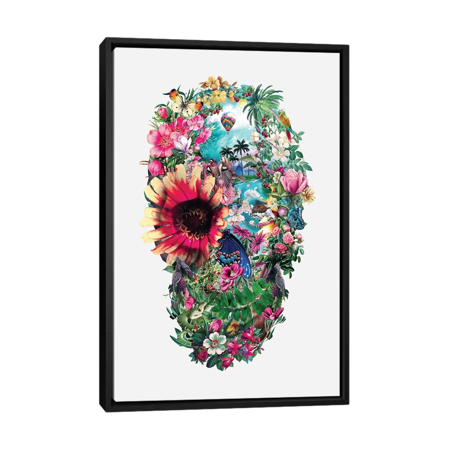iCanvas "Floral Skull RPE" by Riza Peker Framed Canvas Print