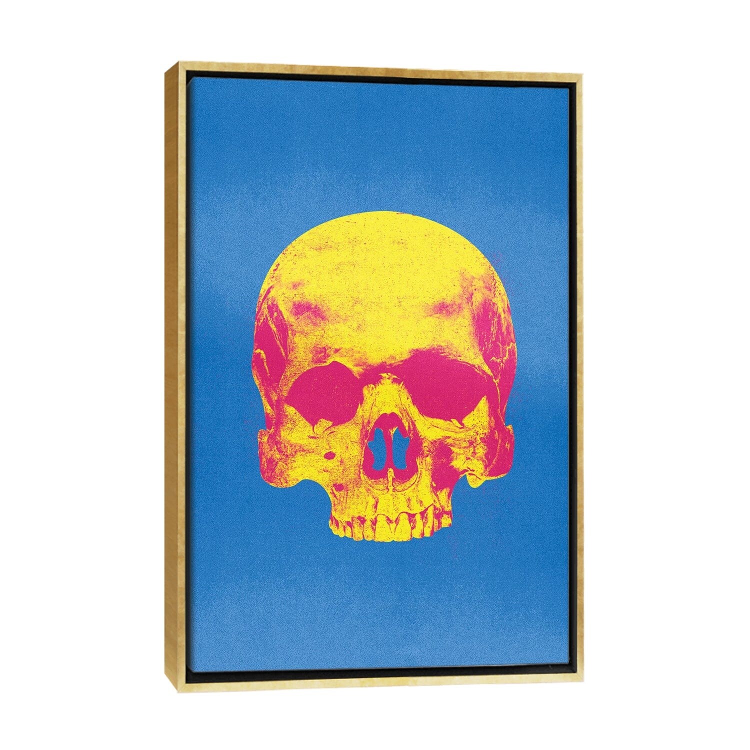 iCanvas "Popart Skull Blue And Yellow" by Ink & Drop Framed Canvas Print