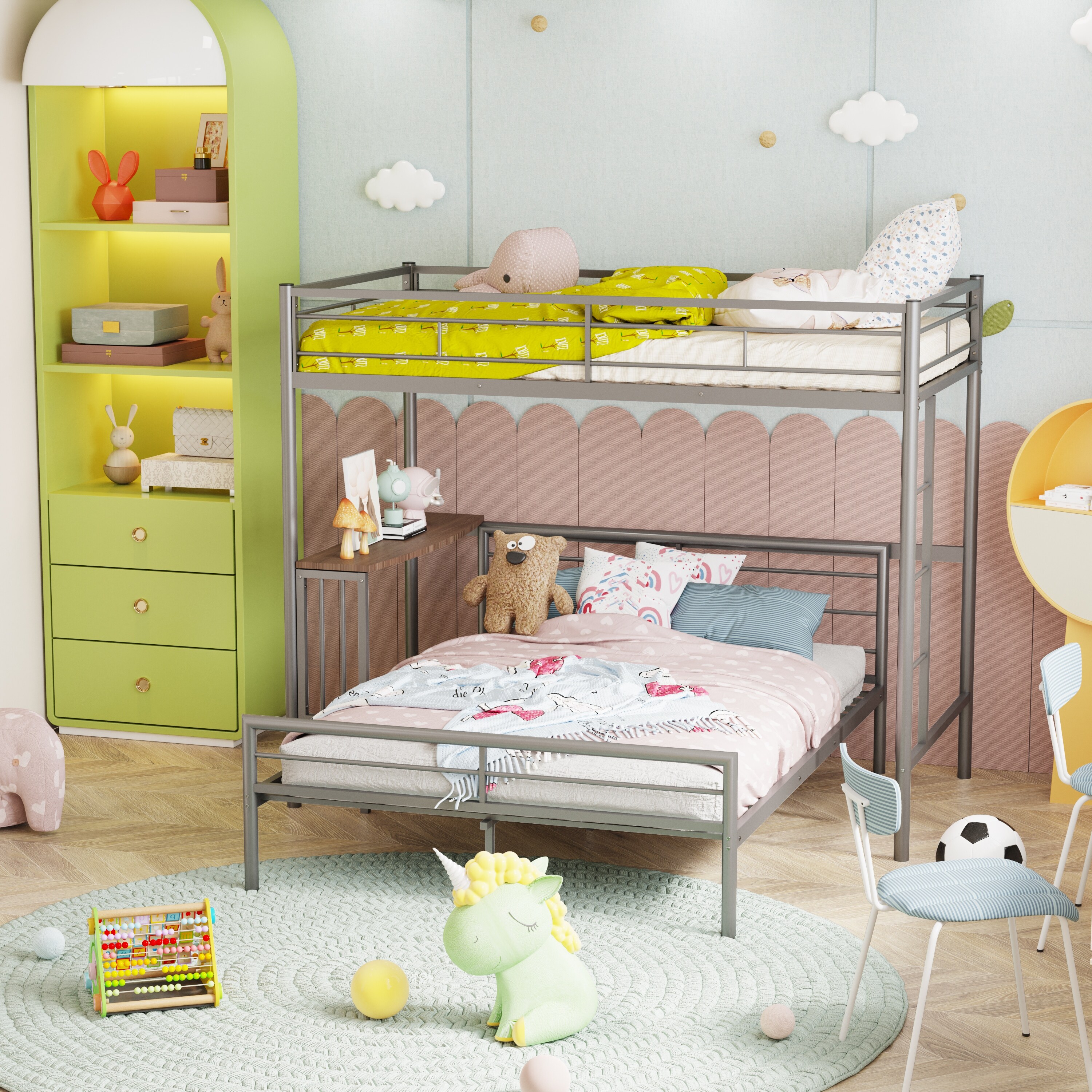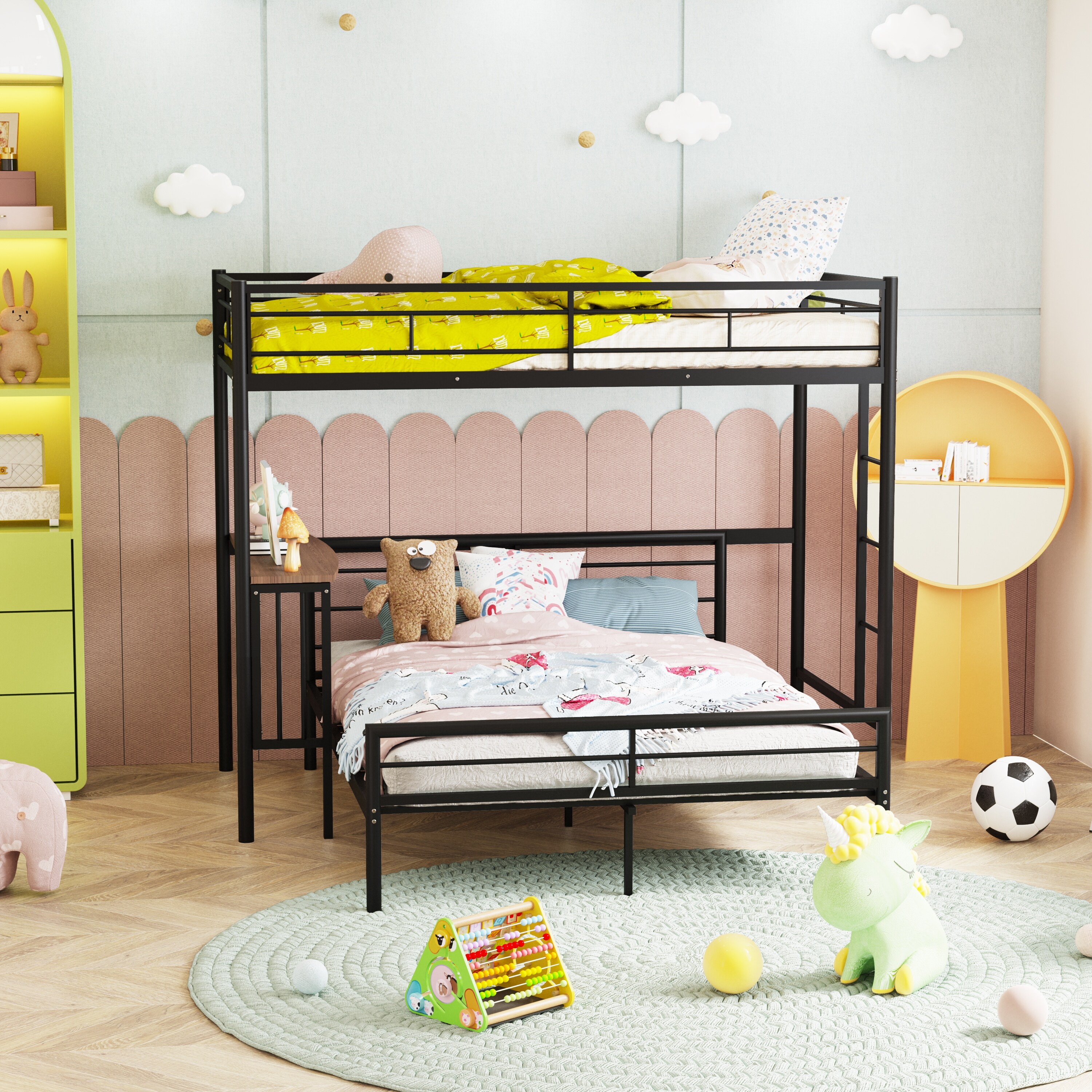 Twin Over Full Metal Bunk Bed with Desk, Ladder and Quality Slats for Bedroom