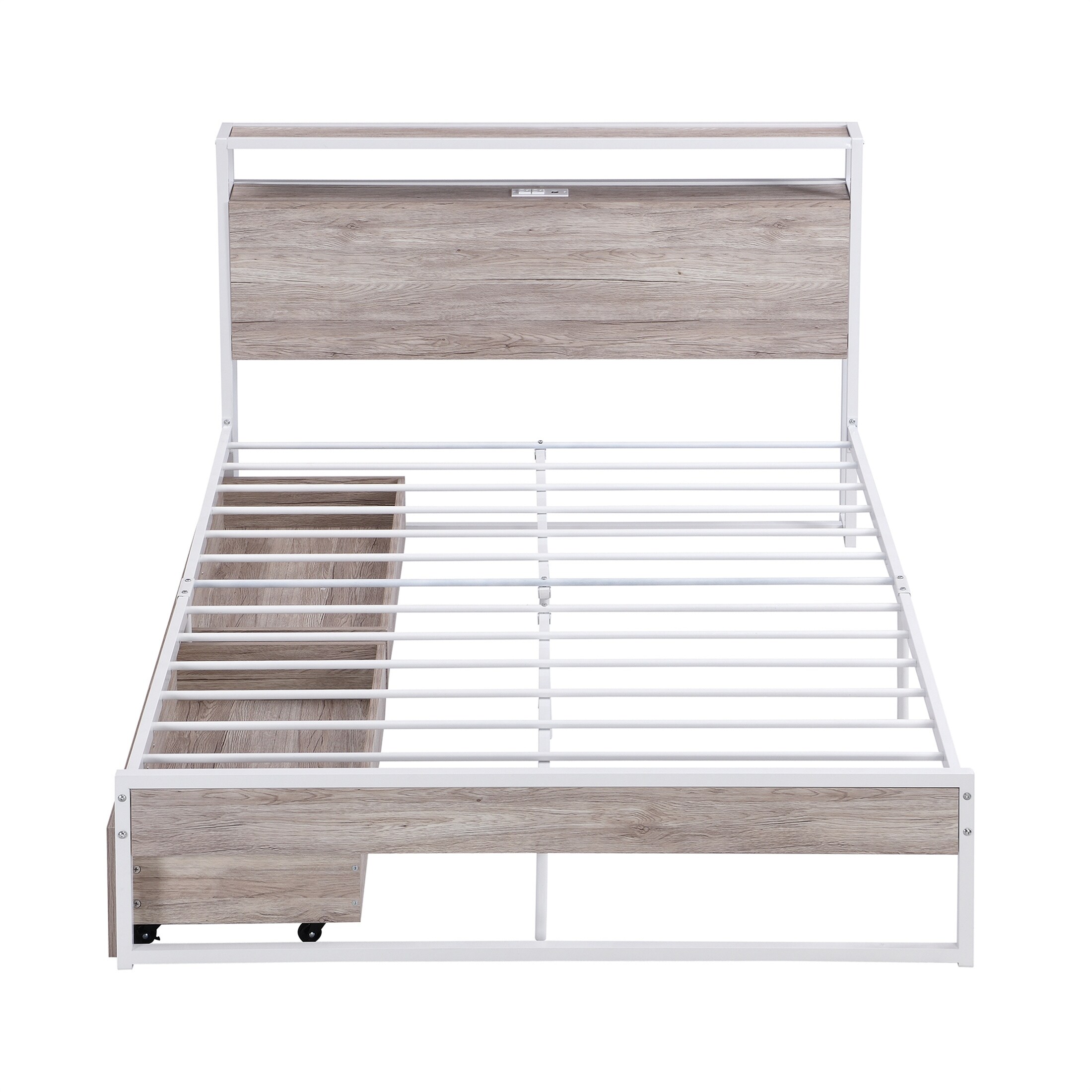 Bed Frame Metal Platform Two Drawers Sockets USB Ports Slat Support