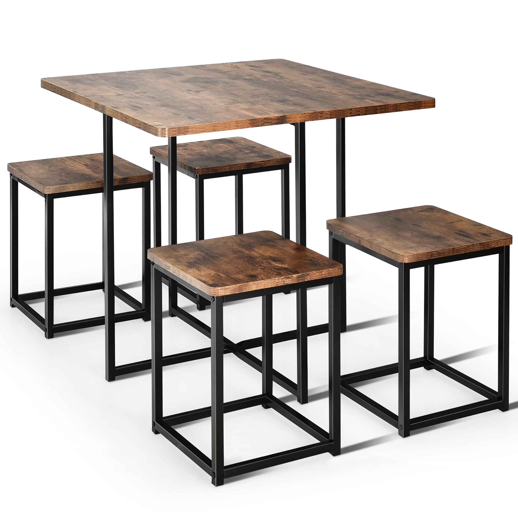 5 Piece Dining Table Set Small Kitchen Table Set with Square Stools