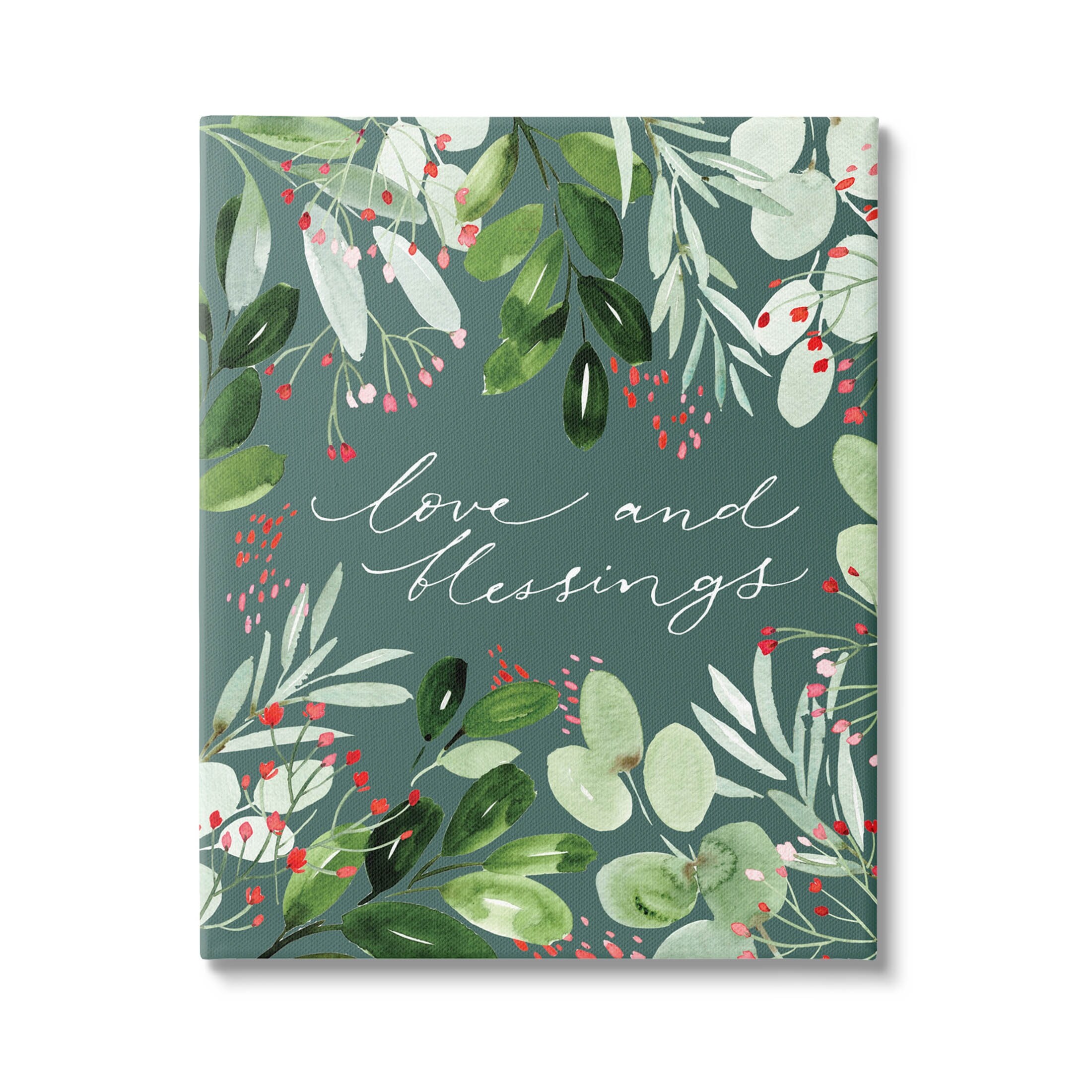 Stupell Industries Love & Blessings Green Floral Leaves Canvas Wall Art by Caverly Smith