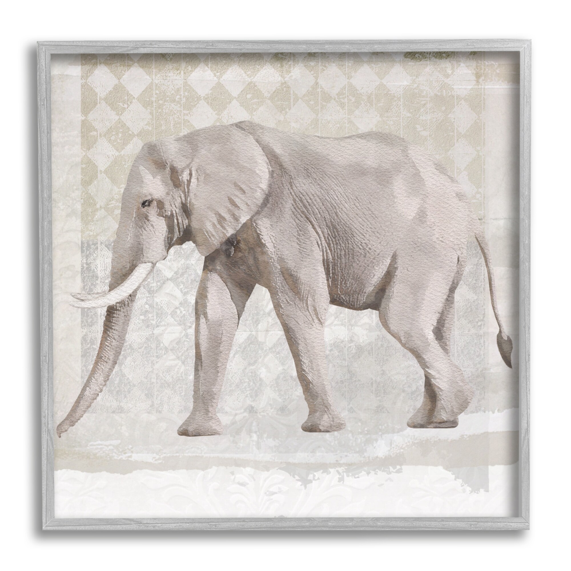 Stupell Industries Muted Geometric Elephant Pattern Framed Giclee Art by Karen Smith