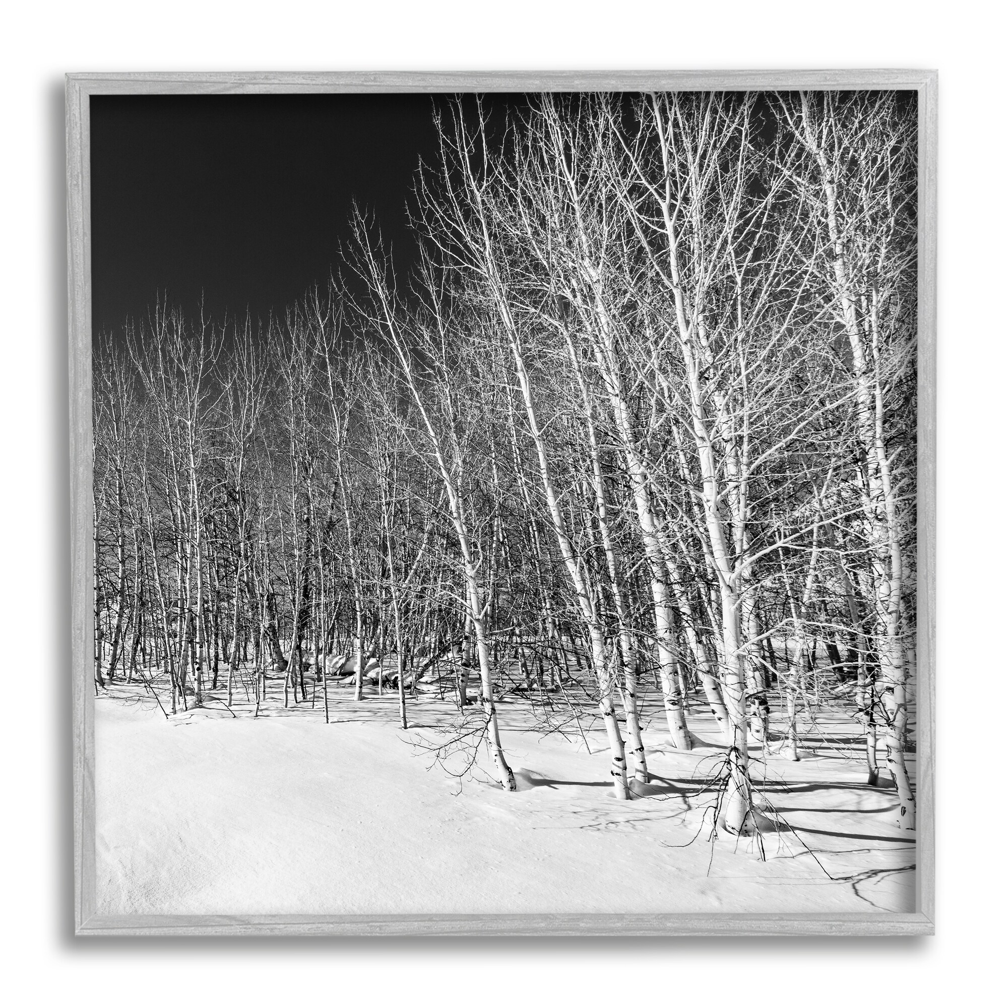 Stupell Mysterious Snowy Forest Looming Nighttime Birch Trees Framed Wall Art, Design by Steve Smith - Grey