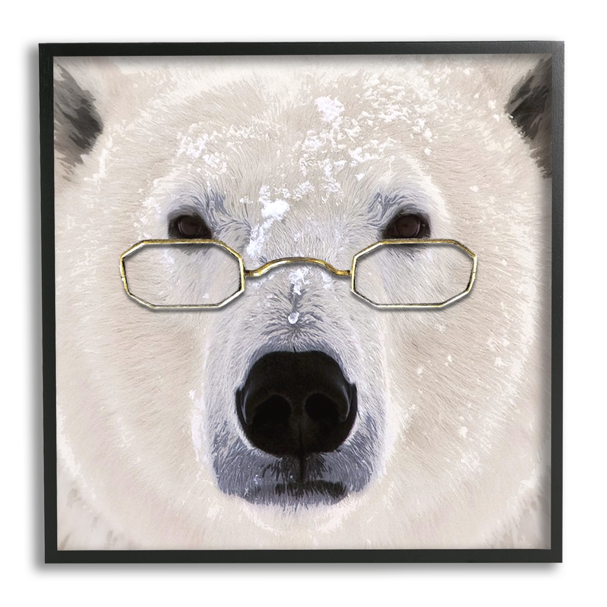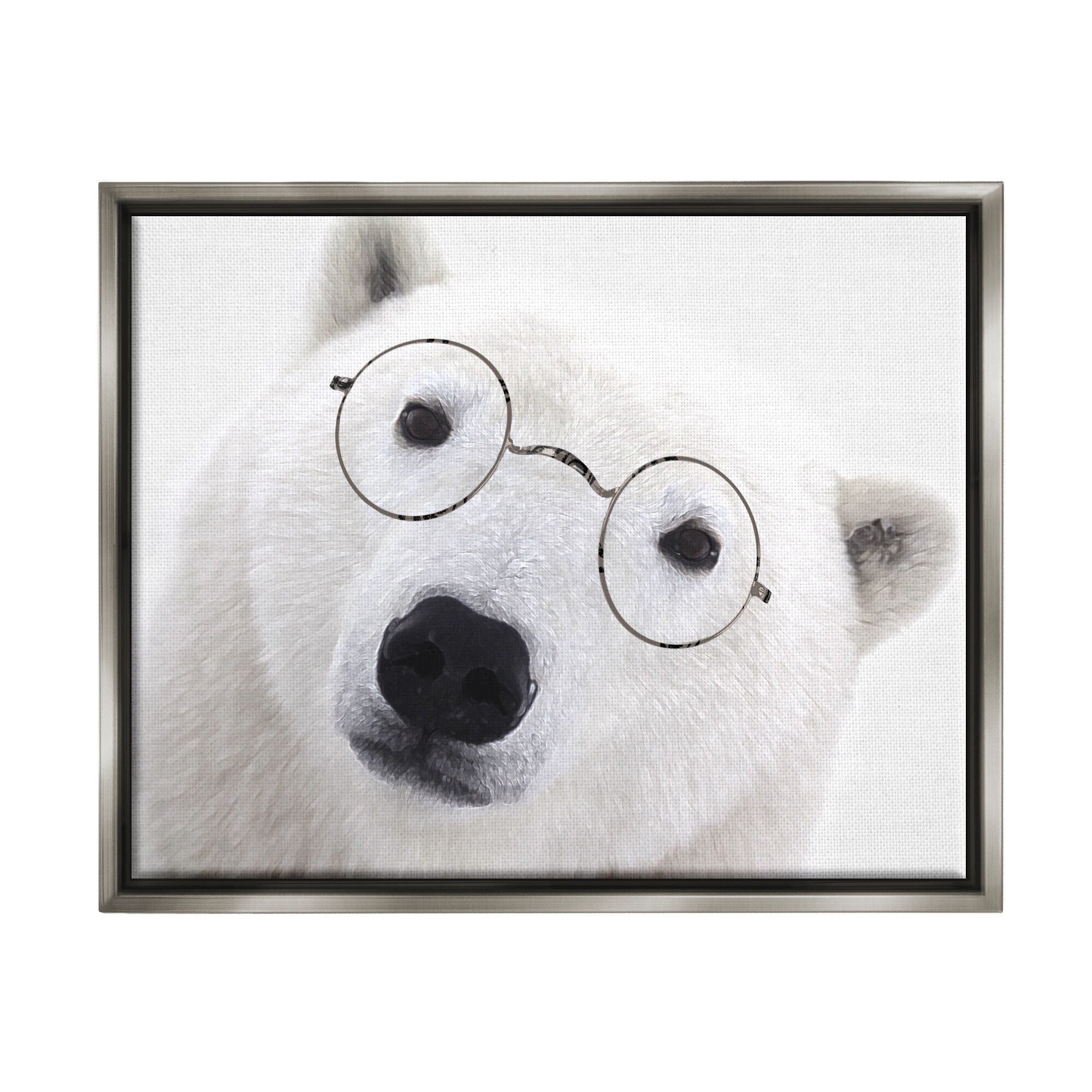 Stupell Industries White Polar Bear Glasses Animal Framed Floater Canvas Wall Art by Karen Smith